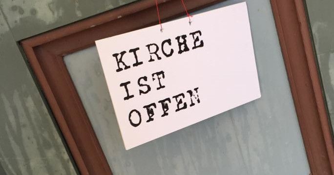 Auf diese Tatsache weist auch Karin Nottrodt mit dem an der Kirchentür der Regensburger Dreifaltigkeitskirche aufgehängten Schild „Kirche ist offen“ hin. Der Bühnenbildnerin kam die Idee, ihre gestalterischen Fähigkeiten in der Kirche auf dem Dreifaltigkeitsberg einzusetzen. Das Ziel: Die Menschen, die vereinzelt und mit viel Abstand in die Kirche kommen, untereinander durch ein Kunstprojekt zu verbinden.