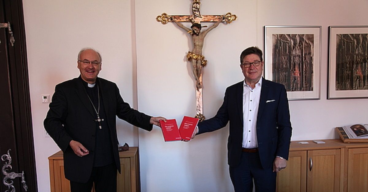 „Der ersetzte Sabbat“ – so lautet der Titel des Buches. Erschienen ist es im Verlag Schnell und Steiner. Dr. Albrecht Weiland, der Geschäftsführer des Verlags, konnte gestern mehrere Exemplare des rund 170-seitigen Buches Bischof Rudolf überreichen. Der zeigte sich mehr als erfreut darüber und dankte für die schnelle Realisierung des Projekts.