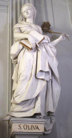 Oliva wurde aus ihrer Heimat Sizilien in Italien nach Tunis verschleppt und dort getötet. Sie starb als Märtyrerin, die ihren Glauben nicht verleugnen wollte. Die Gebeine Olivas wurden nach Palermo zurückgebracht. An der Stelle ihres Martyriums steht seither eine Kirche am damaligen Stadtrand. Hier ist sie auch einst bestattet worden, unklar ist, ob um 463 n. Chr. oder im 10. Jahrhundert. Heute befindet sich an dieser Stelle die Kirche San Francesco di Paola.