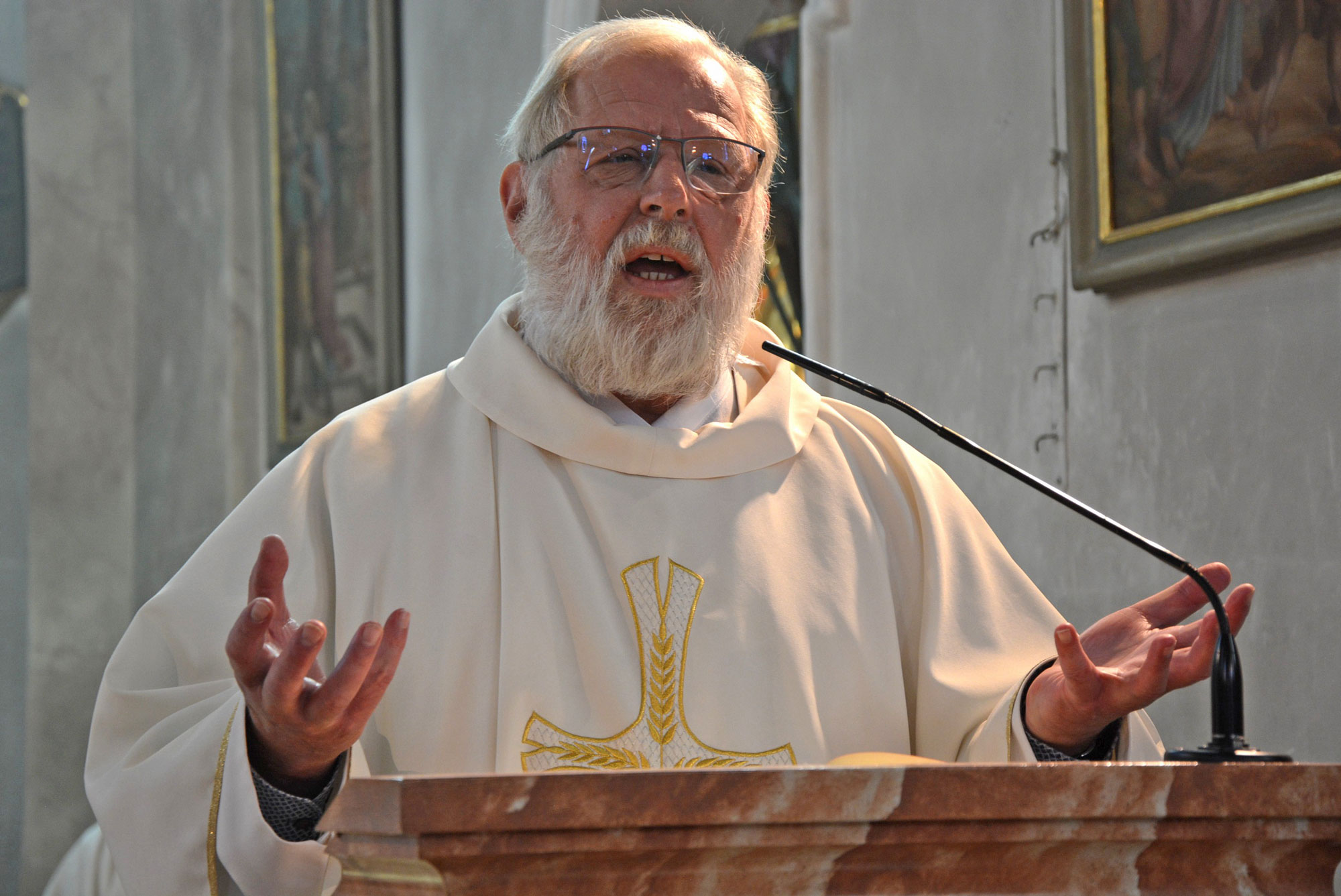 Begonnen wurde der Festtag mit einem Festgottesdienst in der Pfarrkirche. Vertreter des Bistums Regensburg waren Domkapitular Dr. Josef Kreiml und Monsignore Georg Schwager, der Leiter der Abteilung Selig- und Heiligsprechung in der Diözese. Mit am Altar standen Pfarrer Thomas Eckert, ein gebürtiger Konnersreuther, der heute in Regensburg in Sankt Konrad wirkt, sowie Pfarrseelsorger Pater Benedikt Leitmayr. Musikalisch wurden Festgottesdienst und Festakt zur Segnung des Reslhauses von der Konnersreuther Blaskapelle, Leitung Laura Dietl, gestaltet. In seinen Begrüßungsworten in der Pfarrkirche wünschte sich Pater Benedikt Leitmayr, dass das Reslhaus ein Ort der Begegnung, des Glaubens und des Lebens wird. Dr. Josef Kreiml sagte, „ich bin gerne gekommen, ich war schon öfters hier, dort wo die Resl einst lebte und wirkte“. Die Predigt stellte Pater Benedikt Leitmayr unter das Thema, „Christus ist unter uns, groß ist die Hoffnung auf Herrlichkeit“. Und weiter, „das Reslhaus soll ein Ort sein, wo das Leben der Resl in der Gegenwart Gottes lebendig wird“. Der Ortspfarrer machte deutlich, dass bei den umfassenden Sanierungsmaßnahmen Gott mit dabei war. „Unser Ziel war es, das Reslhaus als authentischen Ort zu erhalten, in der die Gegenwart Gottes lebendig bleibt. Christus ist unter uns, die Resl ist eine von Christus Gerufene“. Pater Benedikt Leitmayr, der von Anfang an mit in die Arbeiten eingebunden war, dankte allen Planern und Handwerkern, den Fördergeldgebern und allen die sich ehrenamtlich einbrachten, für ihren Anteil am Gelingen des Werkes. „Heute ist ein von Gott geschenkter Tag, Christus ist heute unter uns“, so schloss er seine Predigt. Mit dem gemeinsam gesungenen „Großer Gott wir loben dich“, endete der Festgottesdienst.