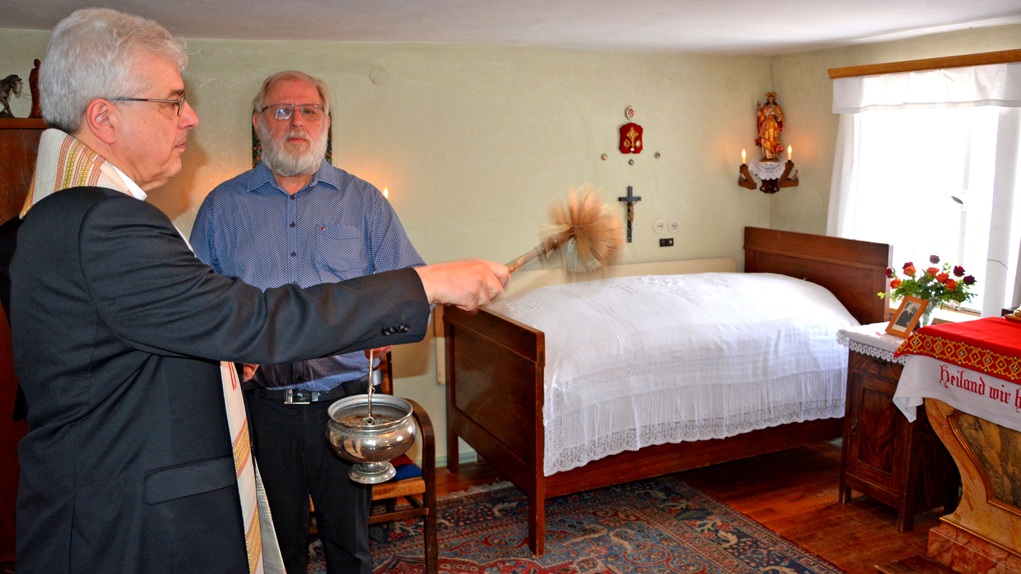 Domkapitular Dr. Josef Kreiml segnet generalsaniertes Geburtshaus der Therese Neumann