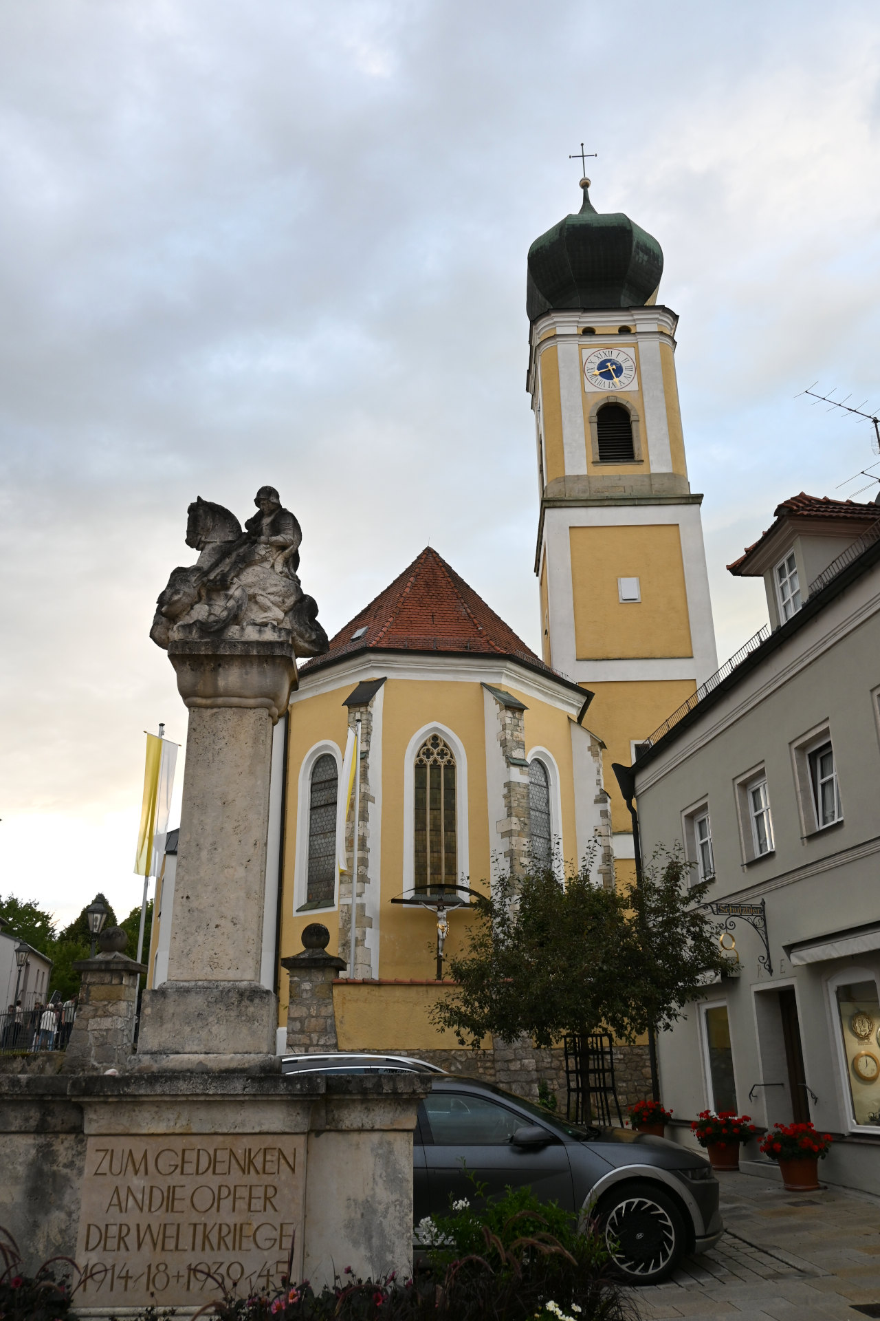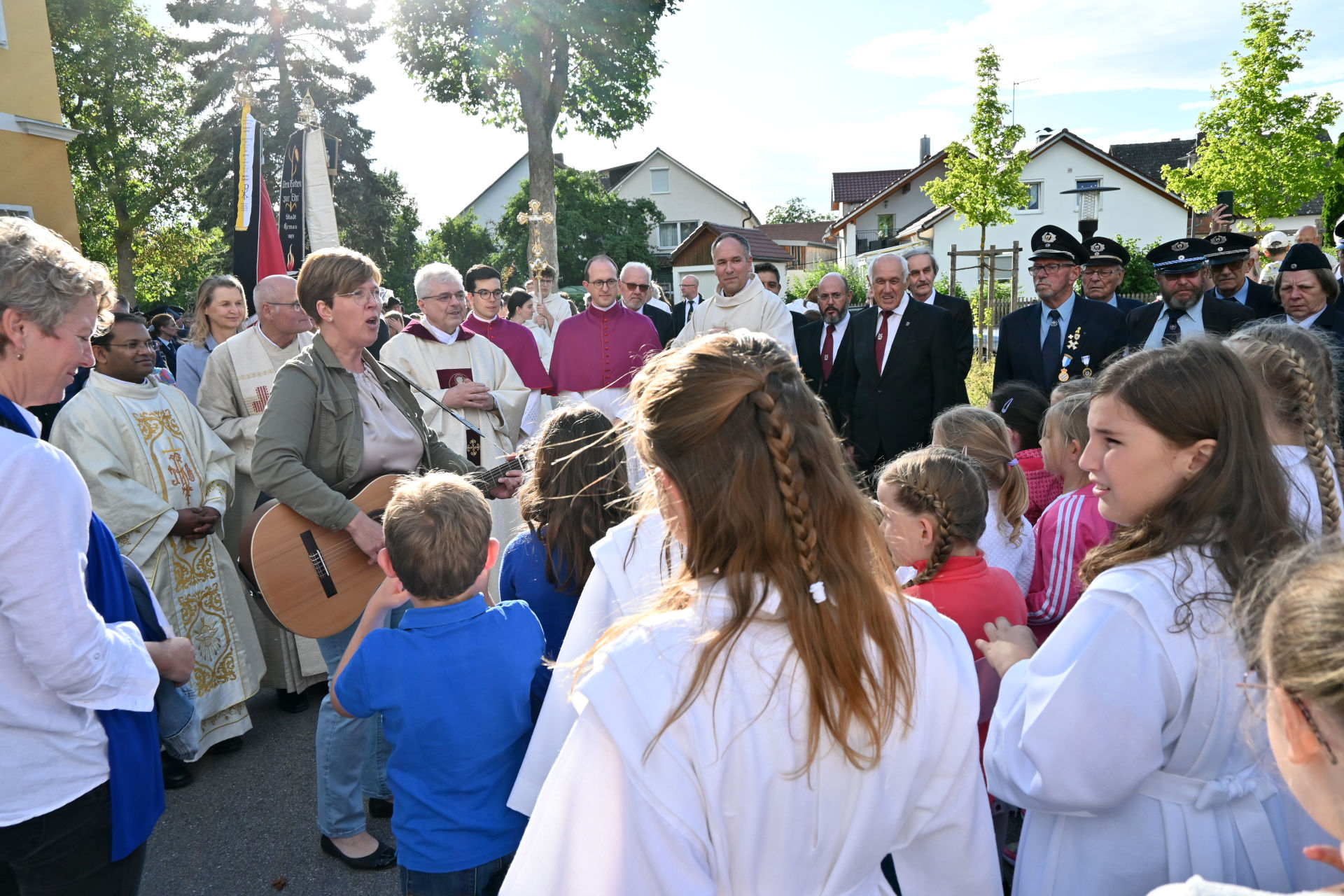 Musikalisch umrahmte den Festgottesdienst der Kirchenchor unter der Leitung von Josef Dietl. Vor dem Volksaltar war eigens ein Blumenteppich aufgebaut, den Mitglieder des Pfarrgemeinderates und des Katholischen Frauenbundes gestaltet hatten. Danach war im Rathausgarten bei kostenlosen Getränken und Musik der Stadtkapelle noch ausreichend Gelegenheit zum Gedankenaustausch, für Gespräche und Begegnungen.