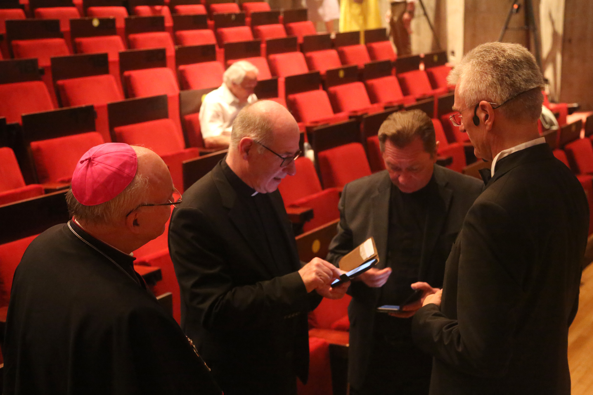 An diesem Abend wurde auch die App „Domspatzen-Barometer“ vorgestellt, in der mit Hilfe von 50 kurzen Fragen die Marke Domspatzen beschrieben werden kann. Fleißig wurde dann in der Pause der QR-Code gescannt und losgelegt. Unter Anleitung von Domkapellmeister Christian Heiß legten Dompropst Dr. Frühmorgen und Generalvikar Dr. Batz gleich mit der Beantwortung los, dies unter dem interessierten Blick von Bischof Rudolf. Gegen Ende des Abends wurde dann das Ergebnis präsentiert: Die Begriffe Freundschaft, Herausforderung, Leistung und Tradition kamen am häufigsten vor und wurden bei über 96% der Befragten genannt.