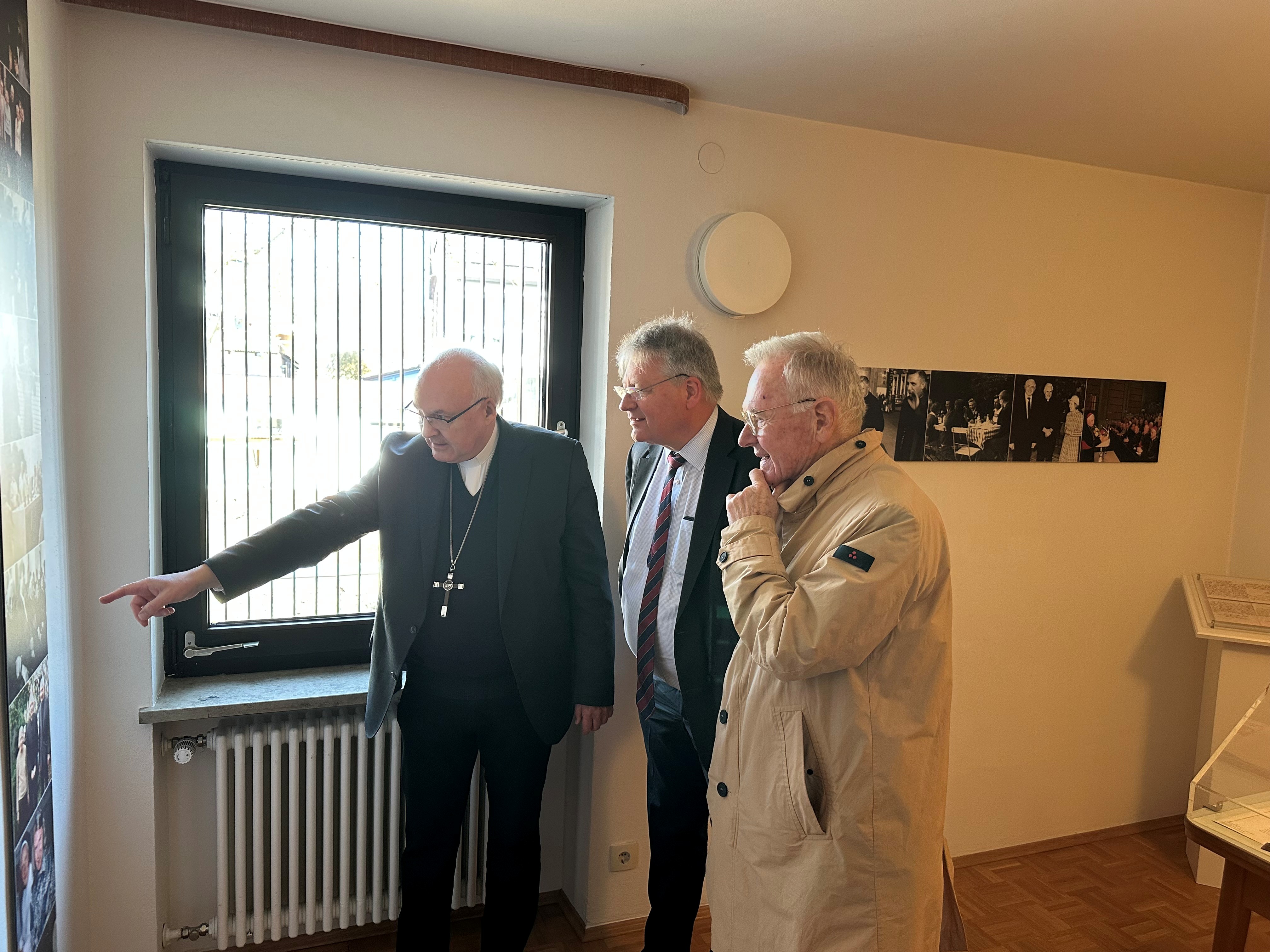 Die Führung übernahm der Bischof selbst – und wer ihm zuhört, merkt schnell, dass es hier nicht nur um Architektur oder Möbel geht, sondern um eine geistige Biografie. Das Haus selbst, so erläuterte Bischof Rudolf Voderholzer während der Führung, wirke auf den ersten Blick zurückhaltend, beinahe unscheinbar. Gerade darin liege jedoch seine besondere Aussagekraft. Es handle sich um ein Wohnhaus, in dem ein Gelehrter lebte und arbeitete – ein Ort der Konzentration, an dem Denken seinen Raum hatte.