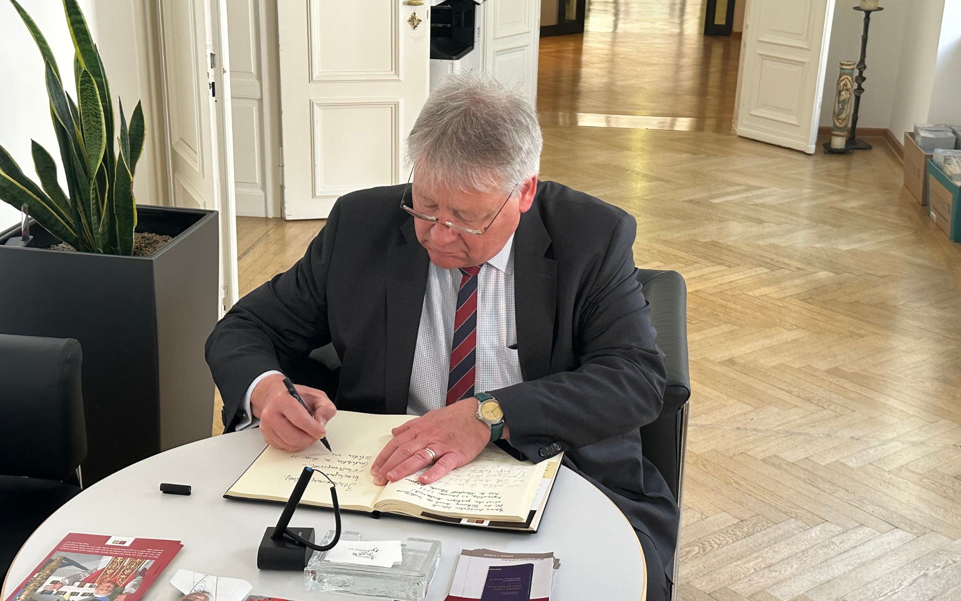 Sein Besuch in Regensburg führte den neuen Botschafter schließlich an zwei Orte, die auf stille Weise miteinander verbunden sind: ein Haus in Pentling und ein Institut am Bismarckplatz. Orte, an denen sichtbar wird, dass Denken Räume braucht – und dass manche Gedanken weit über die Räume hinausreichen, in denen sie einst entstanden sind.