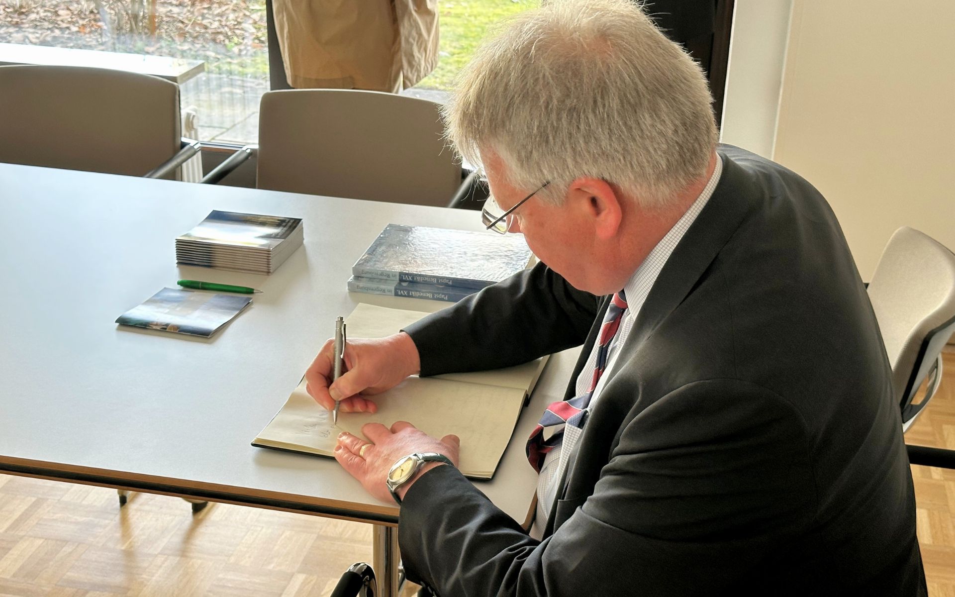 Karl, der frühere Präsident des Bundesnachrichtendienstes, zeigte sich beeindruckt – sowohl von der persönlichen Führung durch Bischof Dr. Rudolf Voderholzer als auch von den privaten Wohnräumen Joseph Ratzingers, des ehemaligen Professors, Erzbischofs von München und Freising, Kurienkardinals und späteren Papstes, sowie von der Arbeit der wissenschaftlichen Forschungsstätte.