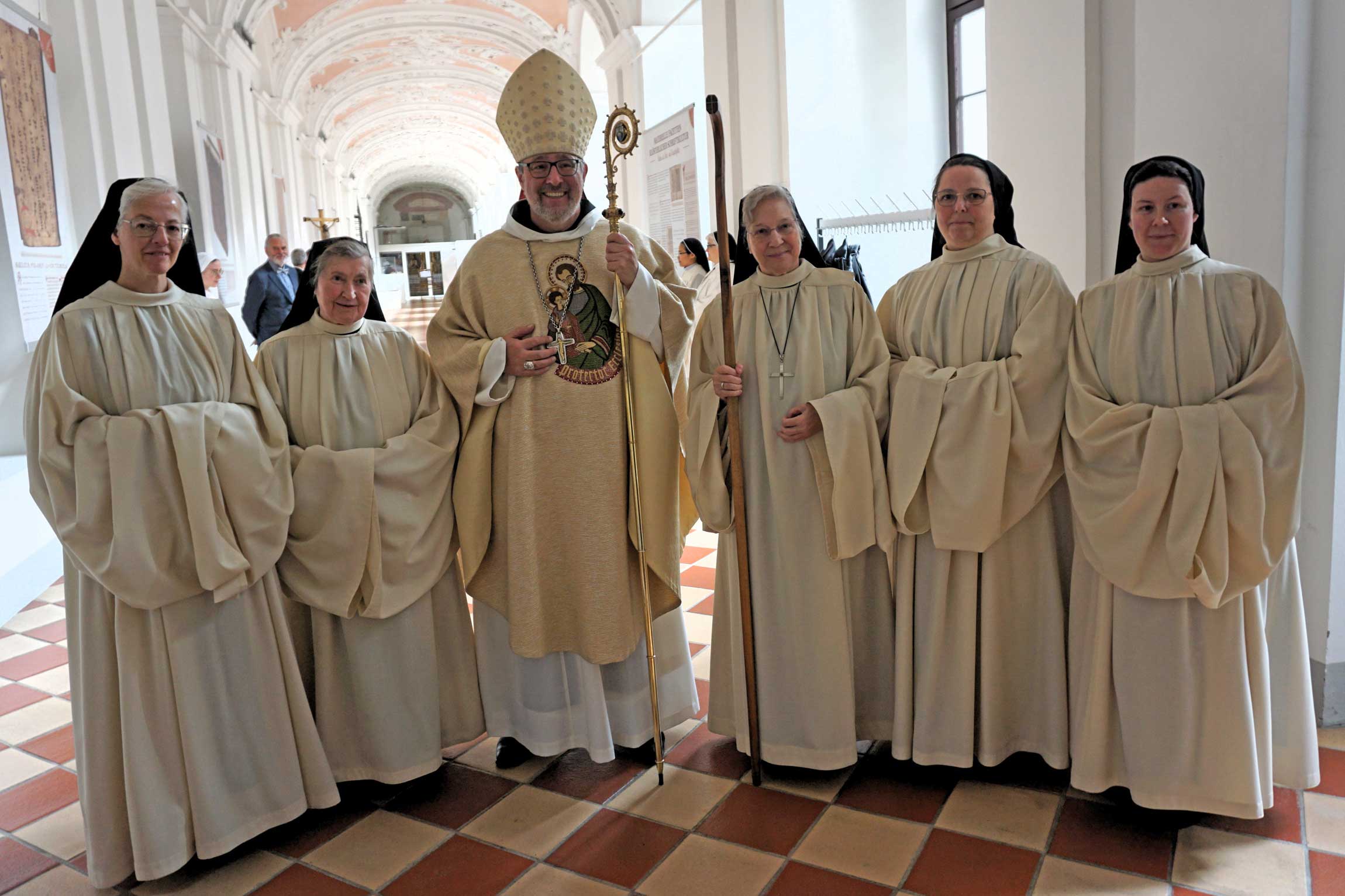 Mit der Aussage „Jubiläen sind ein Zeugnis für Kontinuität, ein Zeugnis für das, was unser Leben fruchtbar macht, für Jesus“ kam Abtpräses Vinzenz zum Ende seiner Ansprache. Dann lud er die Schwestern aus Waldsassen, Seligenthal und Thyrnau zum Abschluss ein, mit ihm gemeinsam nochmal den Lobpreis vom Beginn zu singen: „Lobe den Herrn, meine Seele.“