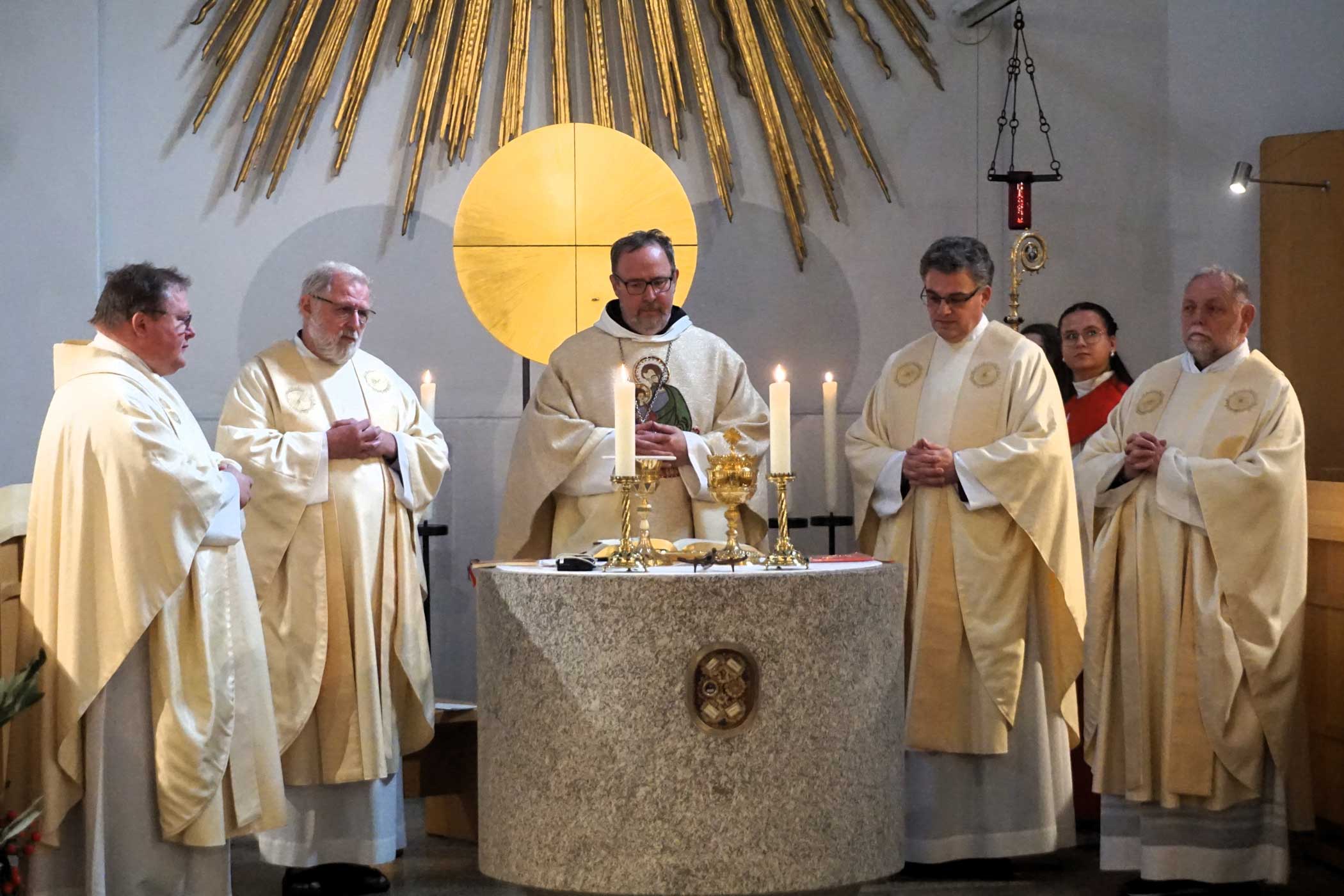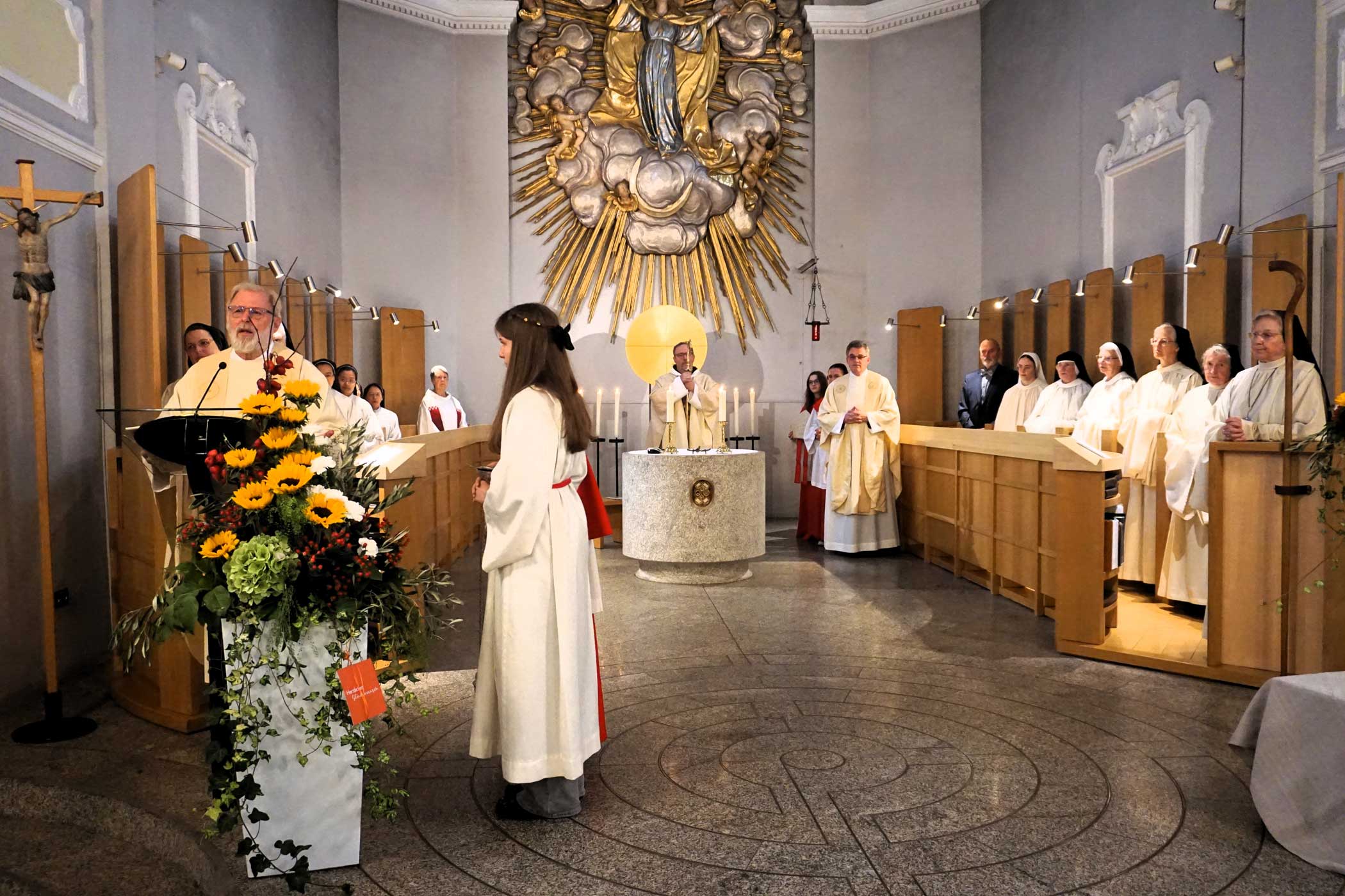 „Lobe den Herrn, meine Seele, und seinen heiligen Namen. Was er Dir Gutes getan hat, Seele, vergiss es nicht, Amen.“ Diesen Lobpreis, der auf den Psalm 103 von David zurückgeht, sang Abtpräses Vinzenz mit seiner sonoren Stimme zu Beginn seiner Predigt. Denn: „Denn bei einem dreifachen Jubiläum kann man nichts anderes als ein Loblied anstimmen. Man kann Gott loben und danken, dass wir immer wieder Spuren seiner Liebe in unserem Leben entdecken dürfen.“
