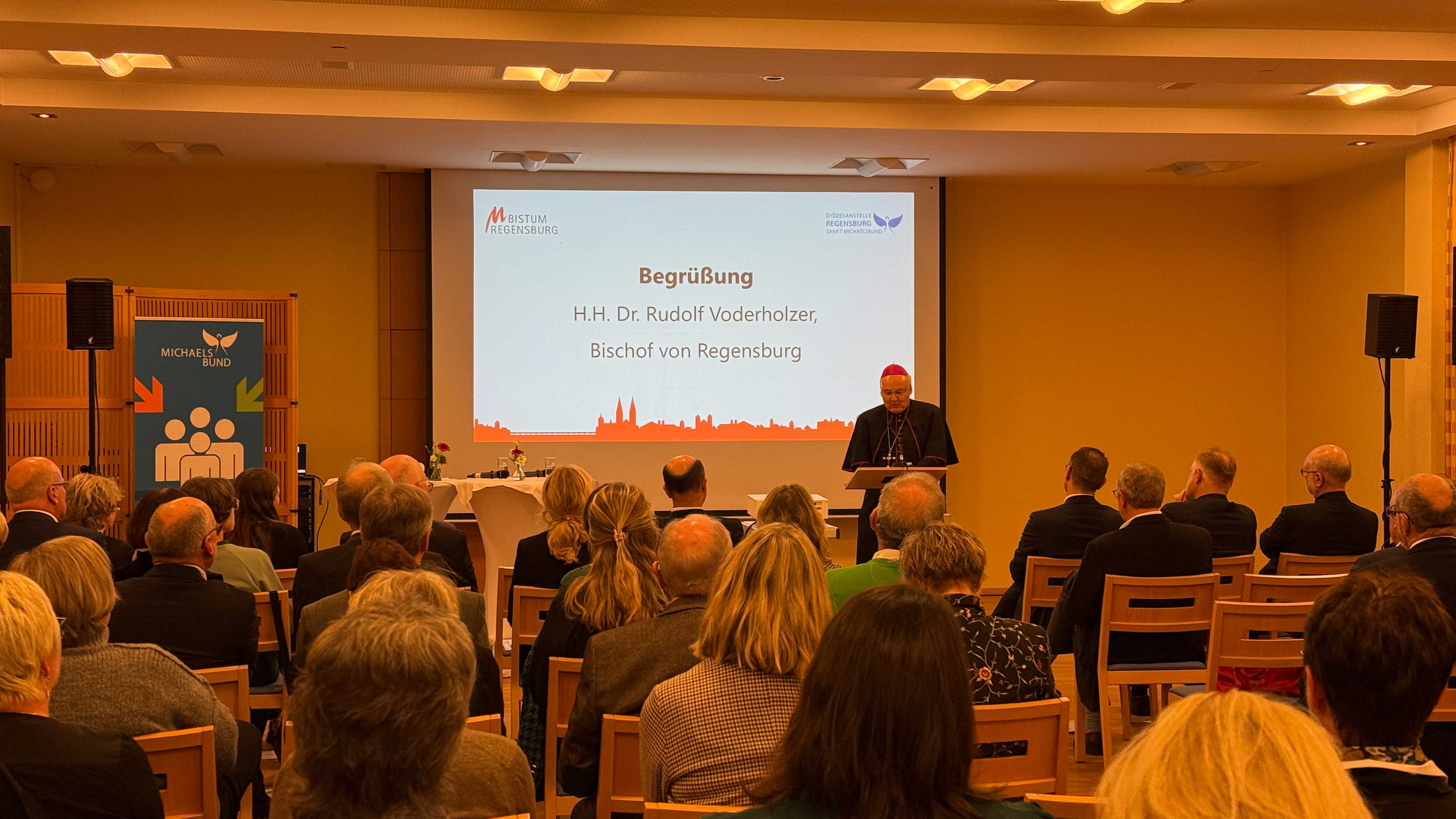 Bischof Voderholzer drückte zu Beginn des Gottesdienstes seinen Dank und seine Anerkennung für das ehrenamtliche Engagement im Sankt Michaelsbund aus. In einer zunehmend digitalen Welt, so der Bischof, bleibe das Buch jedoch ein wichtiges Medium. „Ich glaube, dass die Bücher nicht so schnell verschwinden werden“, betonte der Oberhirte und hob hervor, wie wichtig Bücher weiterhin für die Kultur und Bildung seien.