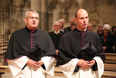 Domvikar Christian Kalis ist der neue Jugendpfarrer im Bistum Regensburg (im Bild links). Er leitet damit das Bischöfliche Jugendamt und ist zugleich Präses des BDKJ-Diözesanverbands. Der BDKJ ist der Bund der Deutschen Katholischen Jugend. Am 1. September wurde C. Kalis von Bischof Rudolf Voderholzer zum Domvikar ernannt. Am Samstag, 23. September, hat ihn die Diözesanversammlung des BDKJ ins Amt gewählt. Gleichzeitig wurde sein Vorgänger Thomas Helm, der ebenfalls als Domvikar wirkte, aus seinem Amt verabschiedet.