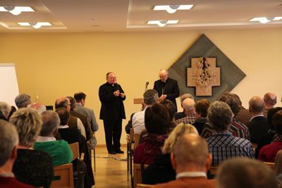 180 Polizeibeamtinnen und –beamte, der Bezirke Niederbayern und Oberpfalz trafen sich am 06.03.2014 zum Einkehrtag im Exerzitienhaus Werdenfels. Anlass war der Beginn der Fastenzeit, die für Christen traditionell eine Zeit der inneren Neuorientierung und Besinnung ist. Bischof Rudolf Voderholzer hielt zu diesem Anlass einen Vortrag am Donnerstagnachmittag. Er würdigte den Dienst der Polizei für die Gesellschaft und hob die großen Belastungen hervor, denen die Polizisten regelmäßig ausgesetzt sind. Die Wolfgangsmedaille, die er den Polizeipräsidenten verliehen habe, seien als Wertschätzung und Auszeichnung aller Polizeibeamtinnen und Polizeibeamten zu verstehen. Im Mittelpunkt des Einkehrtages stand ein Vortrag von Frau Prof. Dr. Gabriele Goderbauer-Marchner vom Institut für Journalistik an der Universität der Bundeswehr in München: welche Folgen ergeben sich aus den neuen Medien, was bedeuten diese Entwicklungen der Onlinekommunikation für die Arbeit der Polizei und wie müssen Chancen und Risiken gerade aus der Sicht des Glaubens bewertet werden? Besonders wichtig war für die Teilnehmer auch der Austausch im gemeinsamen Gespräch: dazu fehle oft die Gelegenheit, die Zeit und der Rahmen. Die Erfahrungen der Kolleginnen und Kollegen seien bedeutsam, um die eigenen Belastungen aufzuarbeiten und abzuschließen. Der Dienstalltag sei angefüllt mit Konfliktsituationen und menschlichen Krisen. Daher sei ein Einkehrtag sehr willkommen, die Seele baumeln zu lassen und voneinander zu lernen.