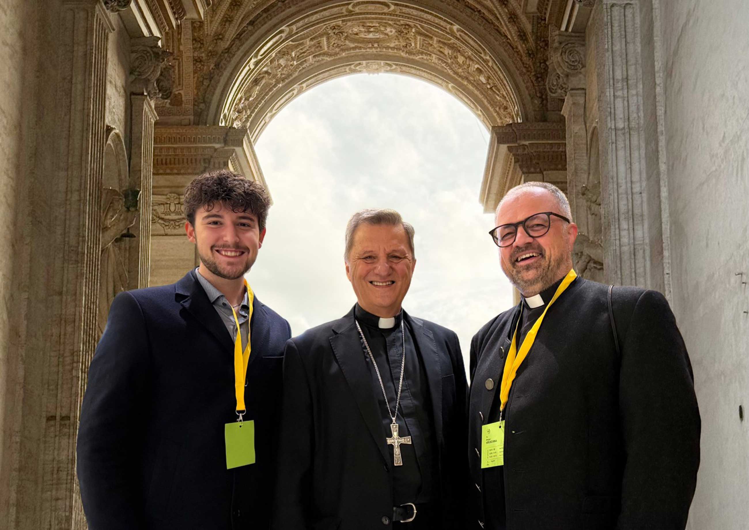 In Deutschland sind in den letzten Jahren viele Kräfte in den eigenen Synodalen Weg gesteckt worden. Auch darum ist der weltweite Impuls in vielen Teilen der Deutschen Kirche noch nicht aufgegriffen worden. Von den 27 deutschen Diözesen waren nur acht vertreten, darunter aber Regensburg, das gerade dabei ist, das Synodenteam zu bilden. Vom Priesterrat und dem Diözesankomitee bereits in dieses Team entsandt (und rechtzeitig in Rom angemeldet), machten wir zwei, Pfarrer Holger Kruschina und Noah Walczuch, uns auf in die Heilige Stadt. Und was sollen wir sagen? Die Tage haben uns bereichert und verändert.