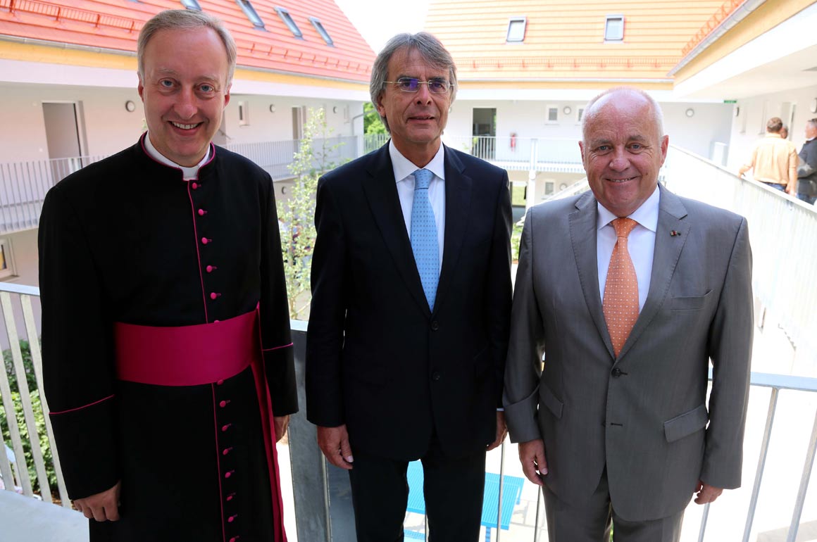 Regierungspräsident Axel Bartelt, Generalvikar Michael Fuchs und der 1. Bürgermeister der Gemeinde Regenstauf, Siegfried Böhringer, besichtigten anlässlich der offiziellen Einweihung und Segnung gemeinsam mit zahlreichen Vertretern des Bistums und der Gemeinde, Projektverantwortlichen und Mitarbeitern die neue Gemeinschaftsunterkunft (GU) Regenstauf.
