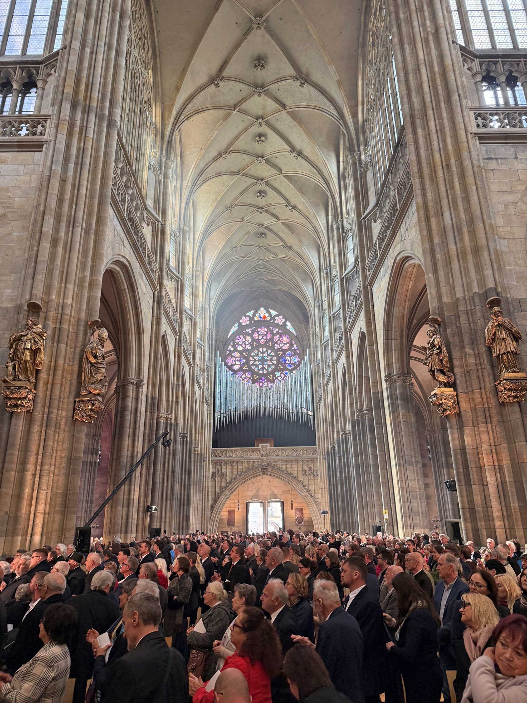 Am Ende des Gottesdienstes begrüßte der Präsident der Republik, Petr Pavel, den neuen Erzbischof. Er wünschte Mons. Přibyl, dass er in seinem anspruchsvollen Dienst Halt in der Treue zu seinen eigenen Werten und in der Glaubwürdigkeit gegenüber den ihm Anvertrauten finde. Zugleich äußerte er seine Freude darüber, dass sowohl der Erzbischof als auch der Präsident das Verbindende suchen und sich um Versöhnung bemühen.