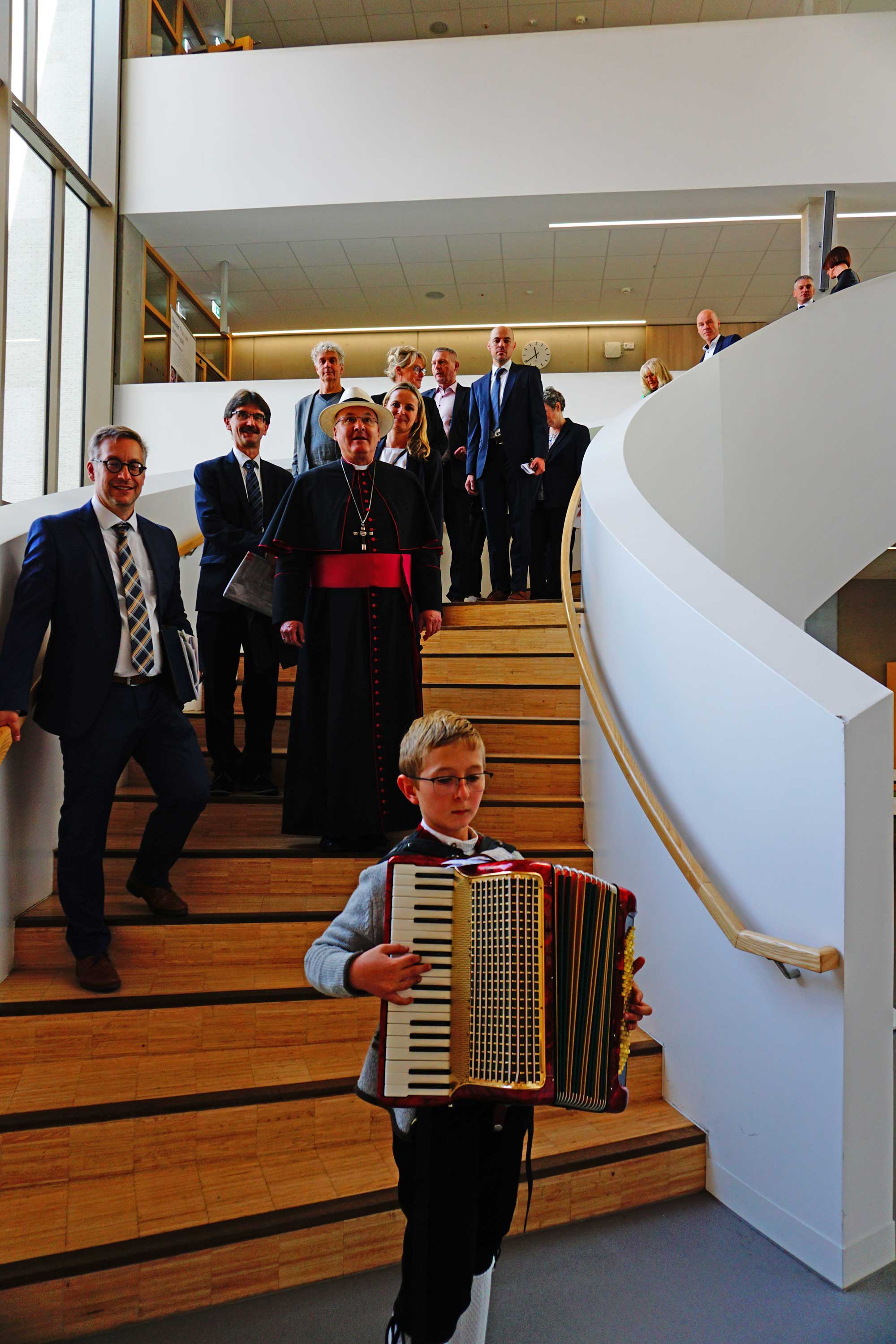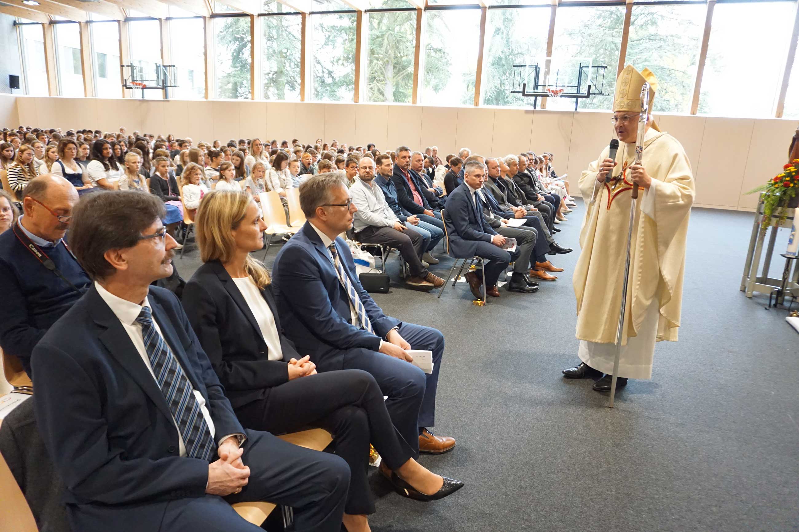 Nach der Predigt segnete Bischof Rudolf das neue Schulgebäude und die Doppelturnhalle. Er bat um Gottes Segen für alle, „die dort lehren, lernen und spielen“, und wünschte ihnen gegenseitige Achtung, das Erkennen von Gottes Güte und Liebe sowie ein erfülltes Leben. Die Segnungsfeier markierte nicht nur das Ende eines umfangreichen Bauprojekts, sondern auch ein Symbol des Zusammenhalts der gesamten Schulgemeinschaft.