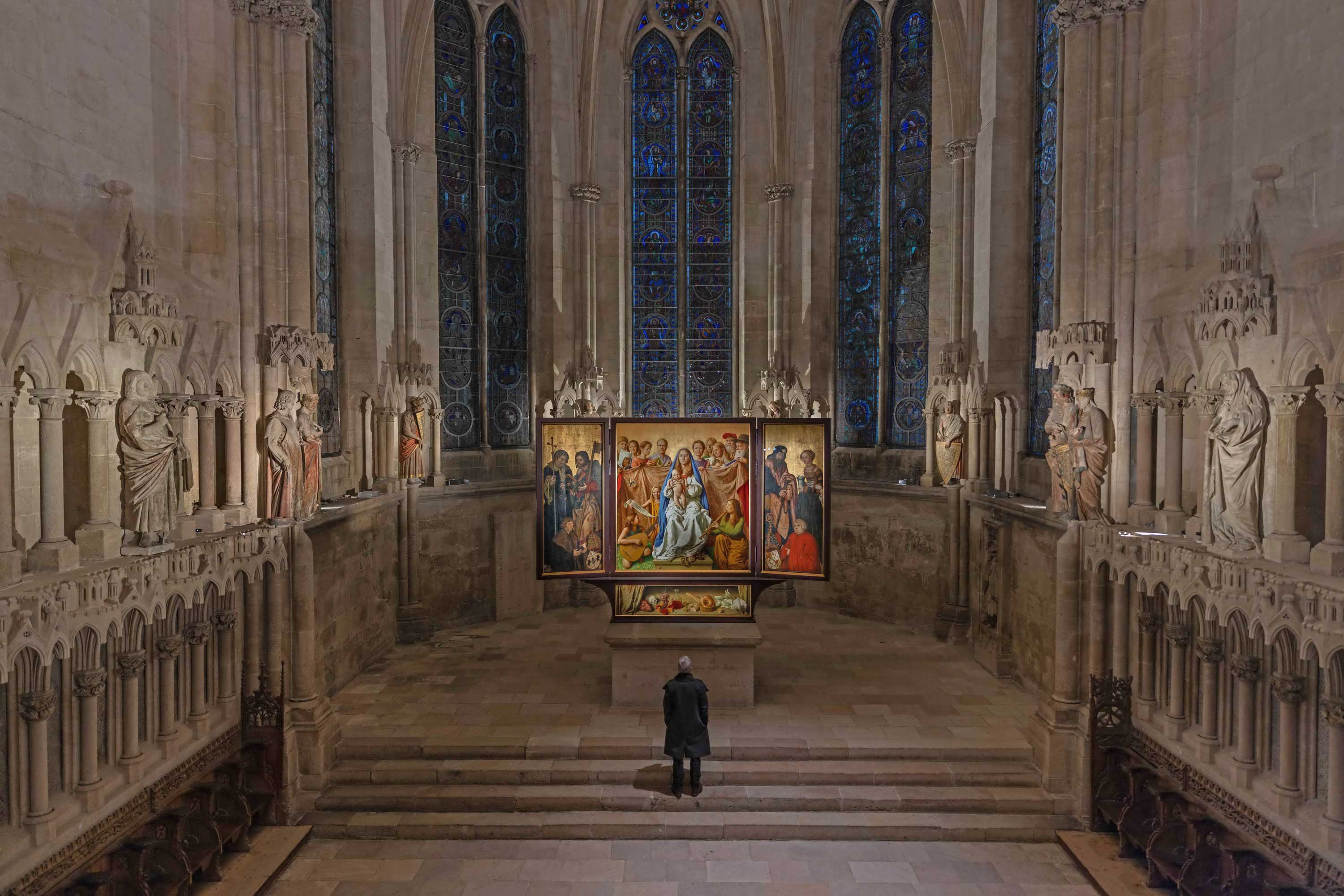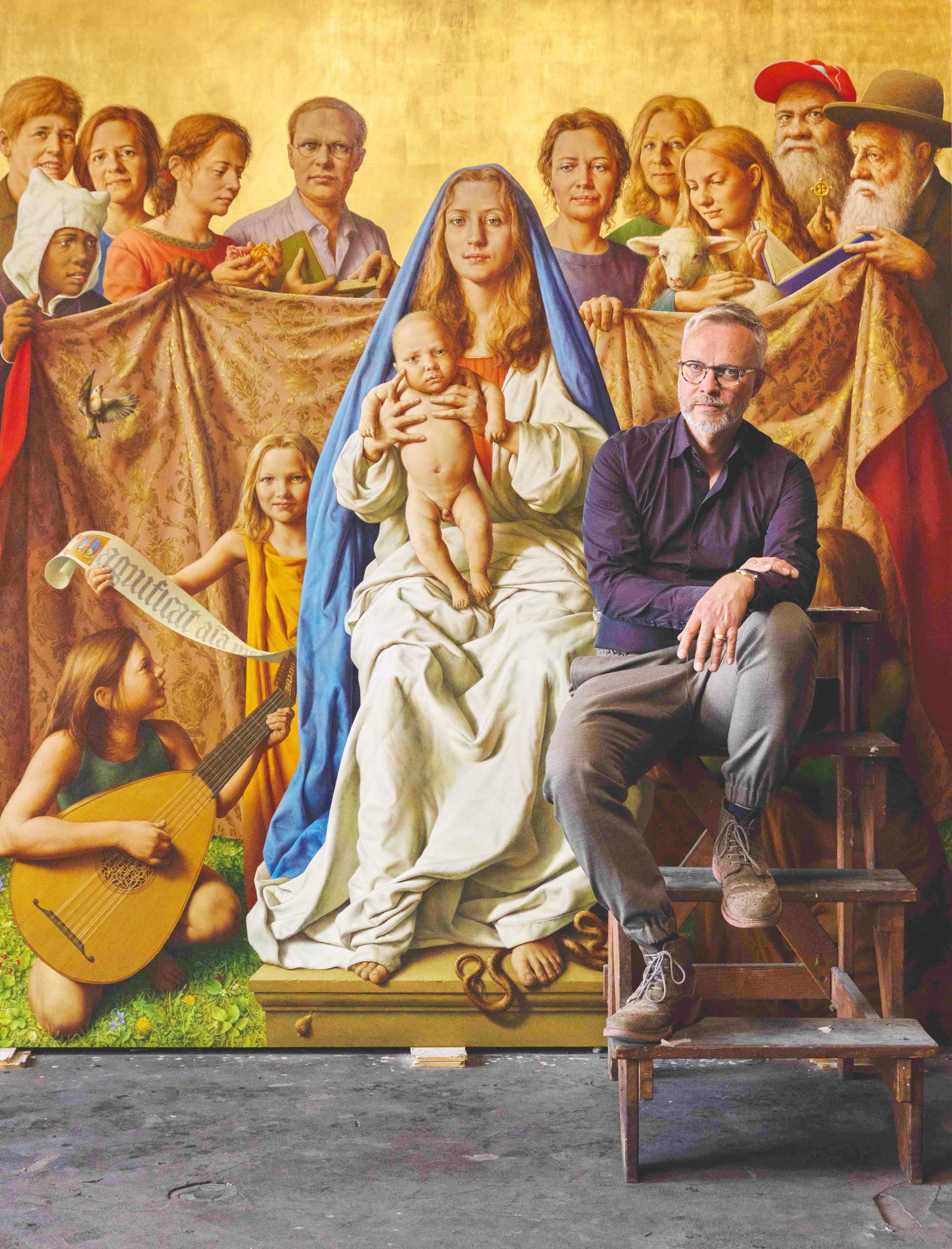 Fast 500 Jahre zuvor fiel das Gemälde von Lucas Cranach dem Älteren einem Bildersturm zum Opfer, nur die Seitenflügel blieben erhalten und weil es keinerlei Aufzeichnungen der Darstellung der Gottesmutter Maria mit Kind gibt, muss Michael Triegel ein gänzlich neues altes Gemälde fertigen.