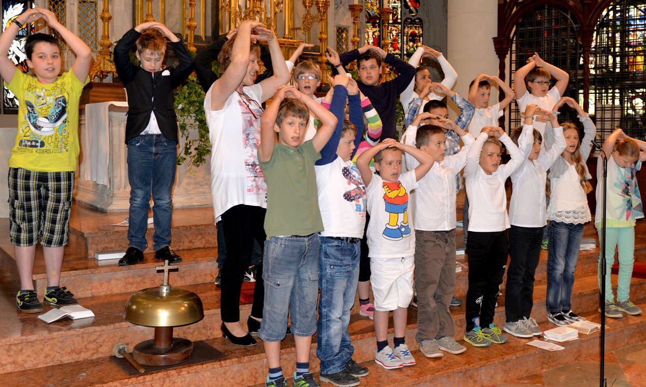 Festlich geschmückt empfing die Basilika Sankt Jakob die neun Mädchen und vierzehn Buben mit ihren Paten, Eltern, Geschwistern, Großeltern sowie vielen Lehrkräften und Mitschülern aus der Bildungsstätte Sankt Wolfgang. "Schön, dass die Jesuitenkirche zu klein geworden ist, weil so viele gekommen sind um diesen Festtag mit euch zu feiern. Deshalb sind wir in die größere Jakobsbasilika ausgewichen" freute sich Bischof Rudolf zu Beginn des Gottesdienstes. Dabei wies er auf den "schulfreien Tag" wegen der Firmung hin, aber auch auf die heute dominierende Farbe Rot im Gotteshaus und bei den liturgischen Gewändern: Rot, die Farbe des Feuers, der Glut, der Leidenschaft, der Liebe und des Heiligen Geistes. "Lasst euch anstecken mit der Glut der Begeisterung, der Schwung und Energie entfacht" betonte der Bischof.