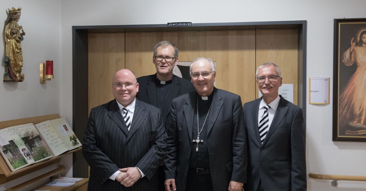 Komtur Hans Pschorn begrüßte die Gäste und Confratres im Altenheim Albertinum herzlich und drückte seine Freude darüber aus, dass Bischof Rudolf am Vorabend seines 60. Geburtstags die Gemeinschaft des Deutschen Ordens besucht. Komtur Pschorn wies darauf hin, wie wichtig es ist, die Entwicklungen der Zeit zu hinterfragen und sich dem Zeitgeist gegebenenfalls auch zu widersetzen. Das Leitwort des Deutschen Ordens „Helfen, heilen, wehren“ gewinne somit erneut an Bedeutung und sei im Übrigen aktueller denn je. „Fritz Gerlich ist für uns ein beeindruckendes Beispiel dafür, wie ein kämpferischer Journalist in einer Zeit der Gewissenlosigkeit den Finger in die Wunde legt.“