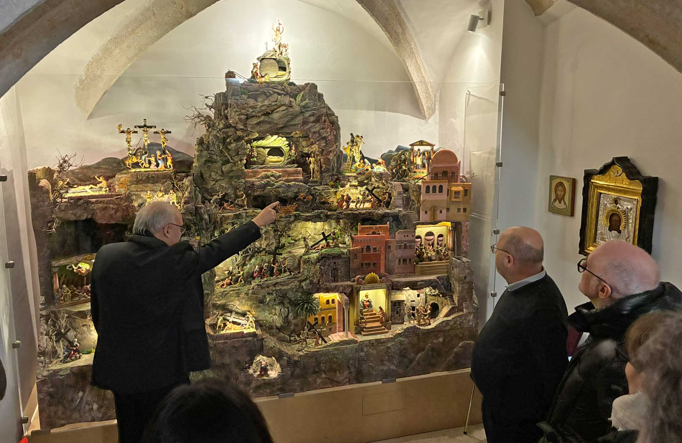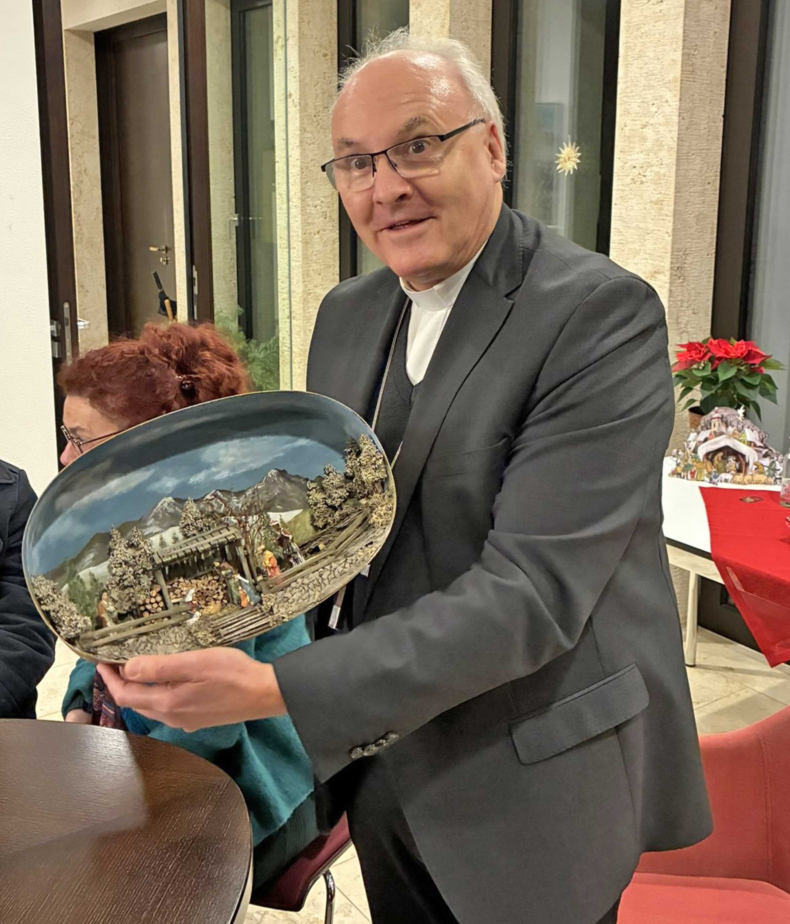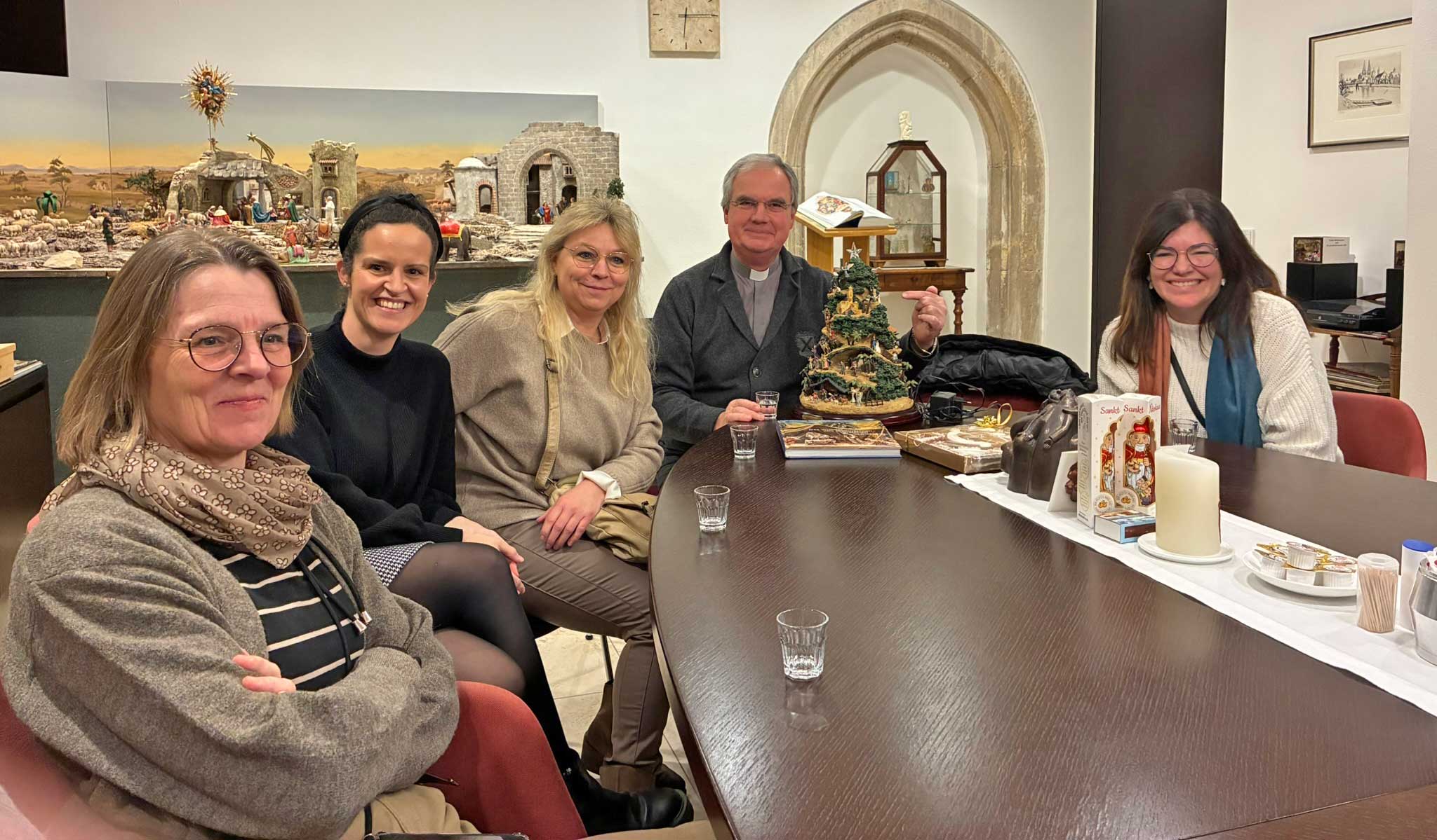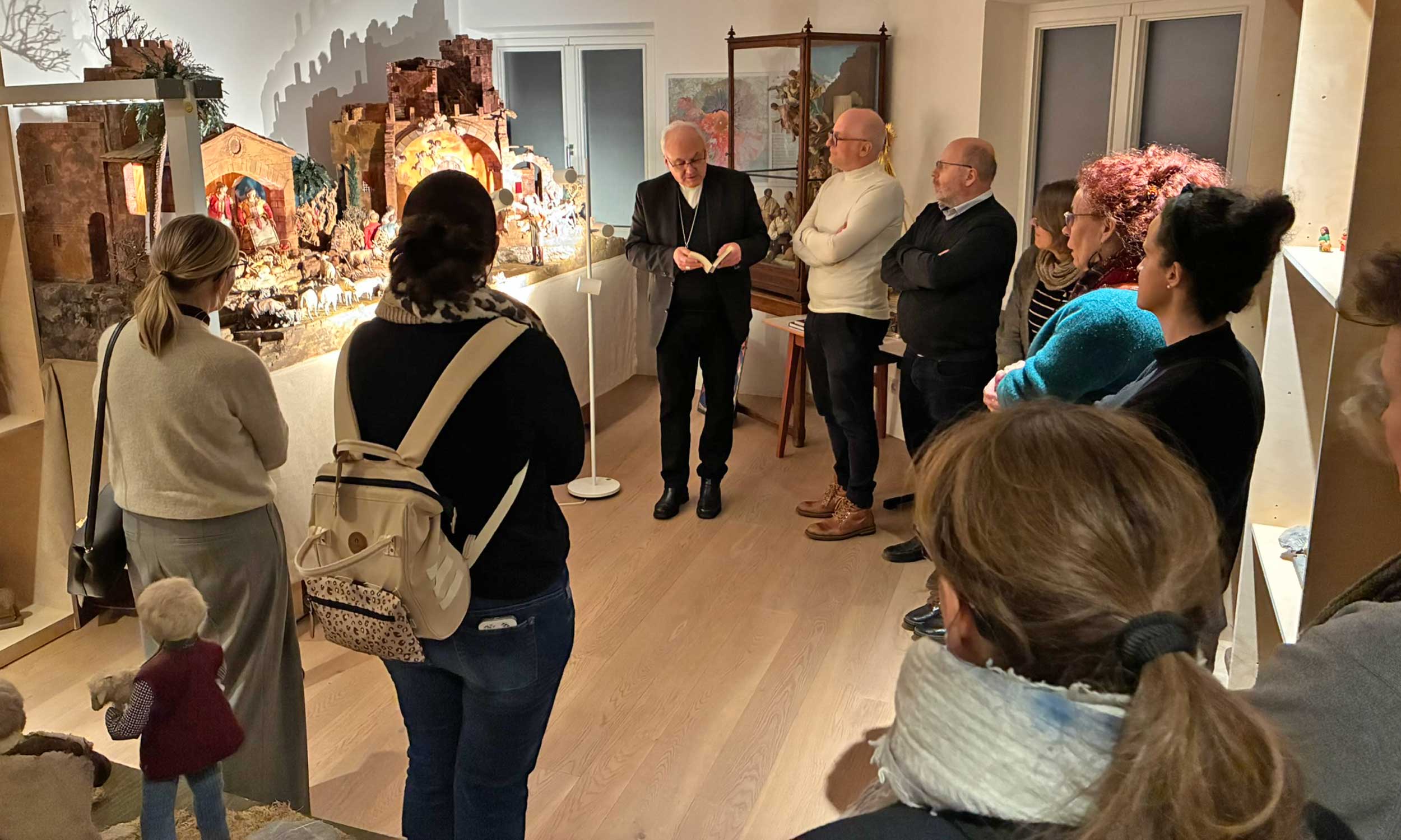 Bischof Rudolf führt Lehrkräfte der Marienschulen durch die Krippenwelt des Bistums