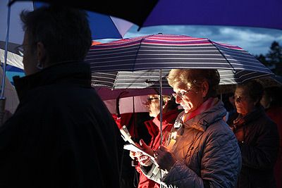Bereits zum siebten Mal pilgerten am Donnerstagabend zahlreiche Gläubige in einer Sternwallfahrt, ausgehend von den vier Pfarrkirchen St. Anton, St. Albertus Magnus, St. Benedikt (Oberisling) und St. Franziskus (Burgweinting) zum Islinger Feld im Südosten Regensburgs. Das „Gebet am Kreuz“ wird dort traditionell zum Jahrestag des Gottesdienstes mit dem Heiligen Vater, Benedikt XVI., am 12. September, dem Gedenktag Mariä Namen, veranstaltet. Noch heute erinnert das weit aufragende Kreuz aus Holz und Stahl an dessen Pastoralbesuch in Deutschland im Jahre 2006. Trotz widriger Wetterverhältnisse kamen auch heuer viele Menschen zusammen, um gemeinsam diese Erinnerung in Gebet und Gesang aufrecht zu erhalten.