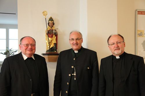 Am Dienstag hat Msgr. Dr. Alexander Hoffmann Bischof Dr. Rudolf Voderholzer einen Antrittsbesuch abgestattet. Msgr. Hoffmann wirkt als Beauftragter der Deutschen Bischofskonferenz (DBK) für die Seelsorge an den Deutschen aus Russland, Kasachstan und anderen GUS-Staaten. An dem Gespräch beteiligte sich auch Prälat Peter Hubbauer, Leiter des Bischöflichen Seelsorgeamtes. Der DBK-Beauftragte ist seit knapp acht Jahren in seinem vielseitigen Amt in Bonn tätig. Er berichtete von den Herausforderungen der Deutschen, die in der Vergangenheit ein schweres Schicksal zu tragen hatten.