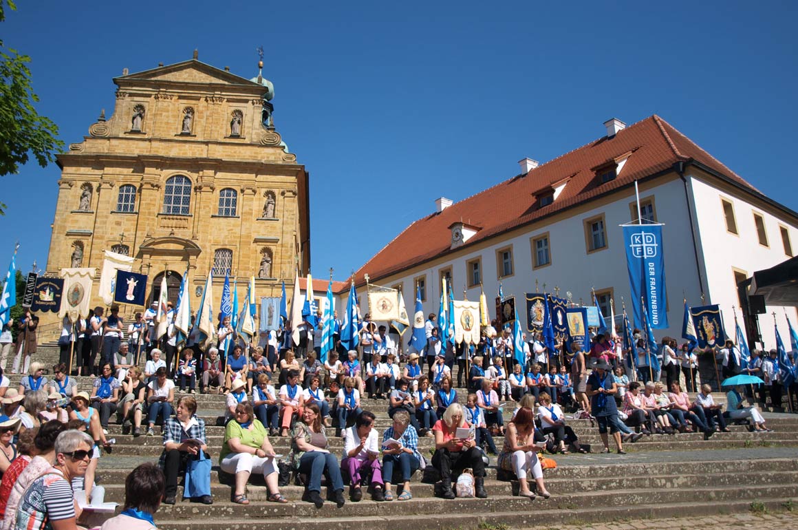 Der Katholische Deutsche Frauenbund (KDFB) Diözesanverband Regensburg ist eine starke Gemeinschaft. Das erlebten alle, die am 27. Mai 2017 den Open-Air-Gottesdienst am Mariahilfberg in Amberg feierten. Die rund 3.000 Frauen zeigten richtig Flagge: Mit den blauen Frauenbundtüchern und den Fahnen, die die KDFB-Ortsgruppen aus dem ganzen Bistum mitgebracht hatten. Eine wunderbare Atmosphäre umgab die Feier: strahlender Sonnenschein, blauer Himmel, Bäume in voller Pracht, gut gelaunte Wallfahrerinnen und Wallfahrer und dazu die stimmungsvolle Musik der Gruppe „KoLan“.