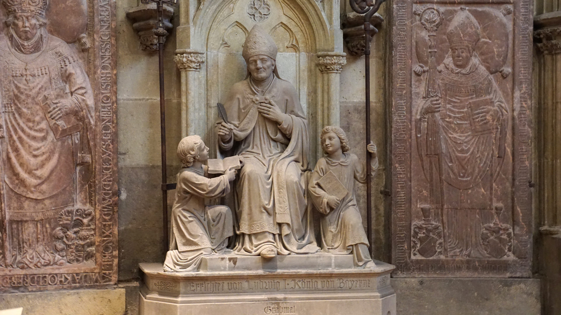 1902 am Dom aufgestellt, wurde dieses Standbild 1936 an die Bahnhofsallee verlegt. Nach einer Restaurierung und mit der Hilfe namhafter Spender kehrte es – auf Initiative des Weltkulturerbe-Vereins, Herr Clemens Unger hat sich große Verdienste erworben – im Mai 2010 an den ursprünglichen Standort auf dem Domplatz zurück.