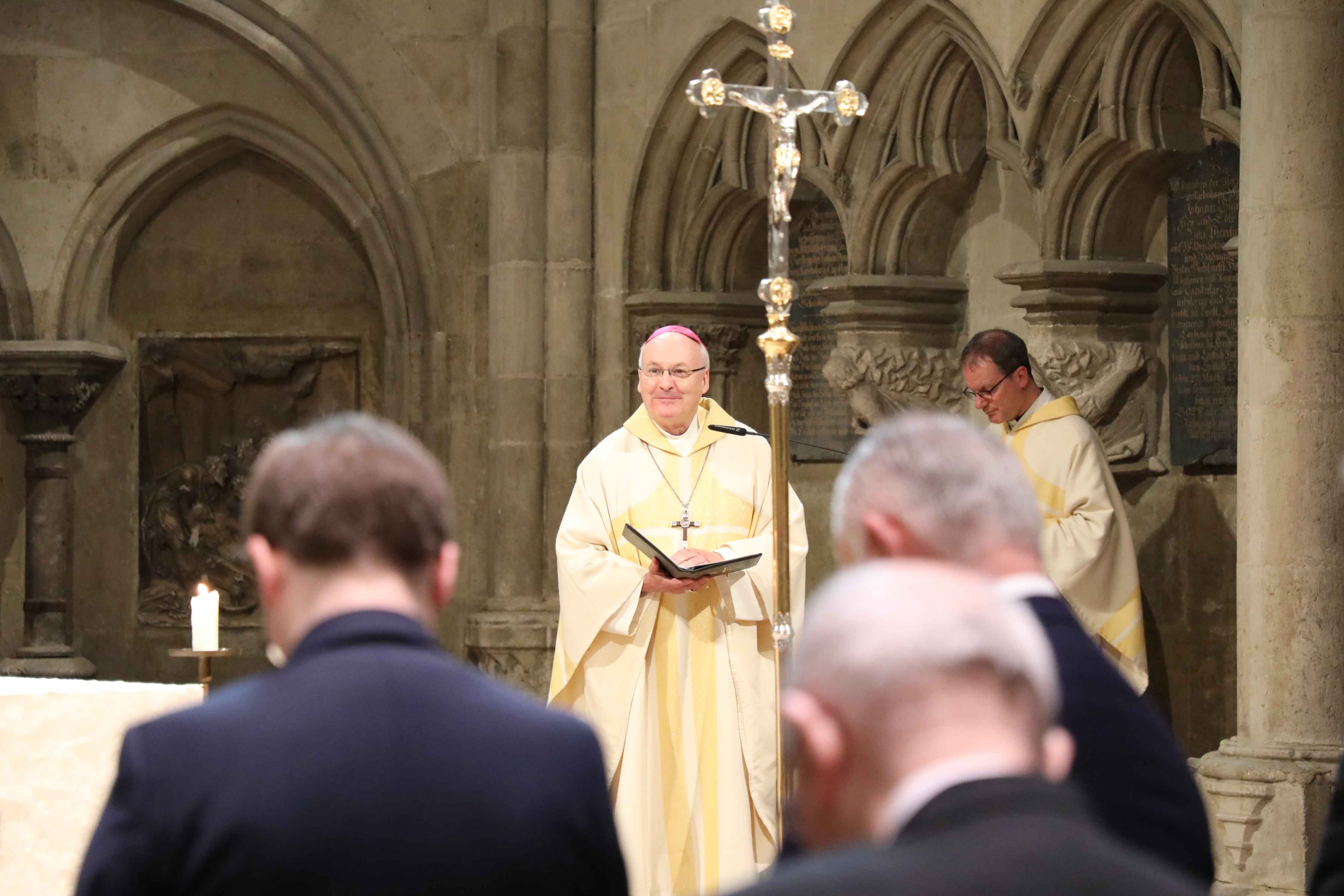 „Vergelt‘s Gott für ihr engagiertes Bemühen um bezahlbaren Wohnraum im Bistum Regensburg“, so bedankte sich Bischof Rudolf beim Pontifikalamt anlässlich des 75jährigen Bestehens des Katholischen Wohnungsbau- und Siedlungswerkes der Diözese Regensburg GmbH (KWS) in der Sailerkapelle im Regensburger Dom. Gemeinsam dankbar Rückschau und Fürbitte für die Zukunft halten, das wollten die Verantwortlichen des KWS gemeinsam mit Bischof Rudolf und den Konzelebranten am Altar, Domkapitular Michael Dreßel, Leiter der Hauptabteilung Diözesane Caritas im Bistum Regensburg, und Dompropst Dr. Franz Frühmorgen sowie Diözesan-Caritasdirektor Michael Weißmann, der als Diakon am Altarassistierte.