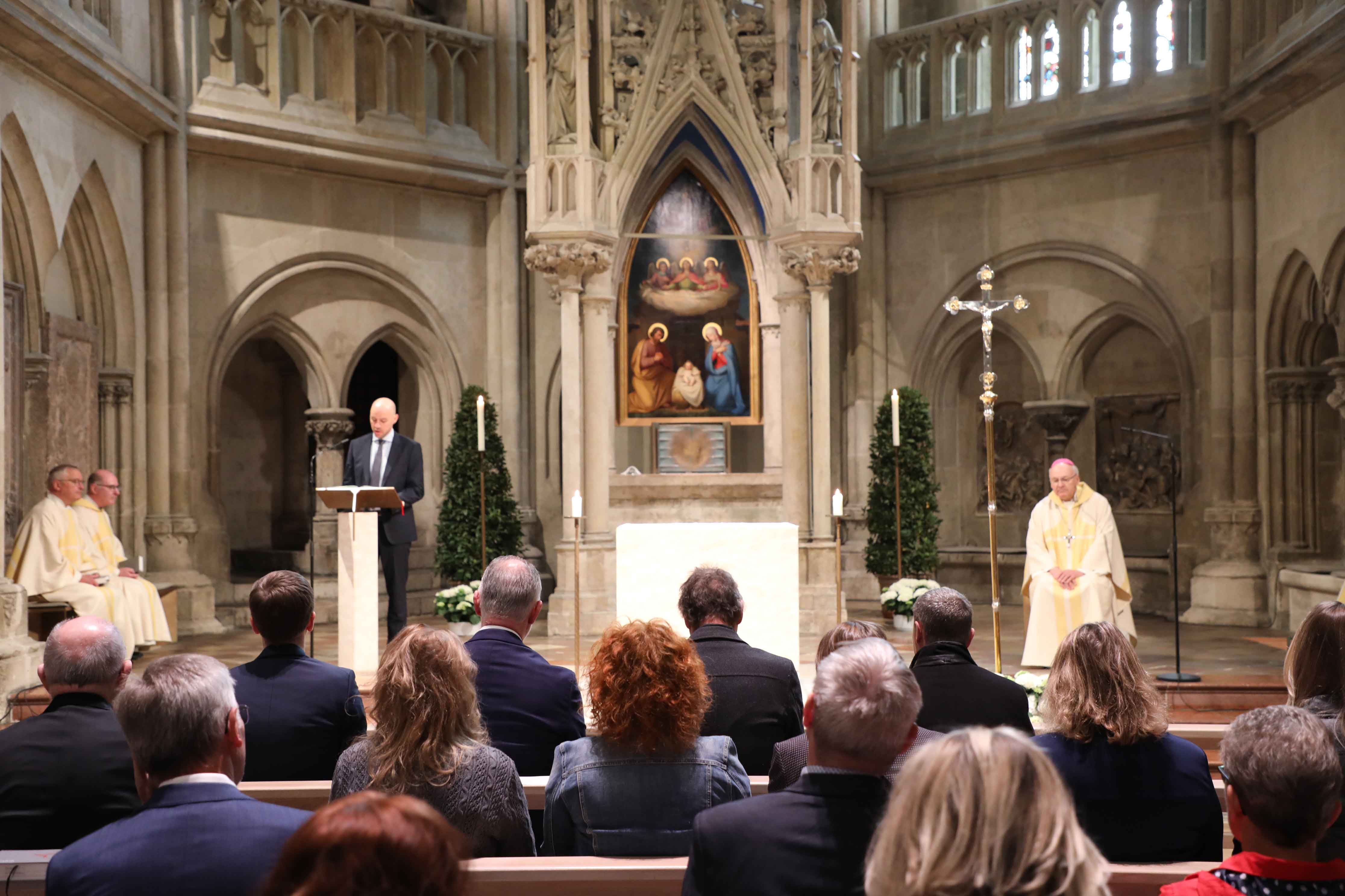 Anlässlich des 75-jährigen Jubiläums feierte der Regensburger Bischof Dr. Rudolf Voderholzer mit Aufsichtsratsmitgliedern, Gesellschaftervertretern, Mitarbeitenden des KWS und Mitgliedern des Diözesan-Steuerausschusses in der Sailer-Kapelle im Regensburger Dom St. Peter die Heilige Messe. Von Seiten des Bistums waren auch der Bischöfliche Finanzdirektor Erwin Saiko, sowie der Leiter der Abteilung Zentrale Buchhaltung Kirchenstiftungen, Wolfgang Bräutigam, der zudem stellvertretender Finanzdirektor des Bistums ist.