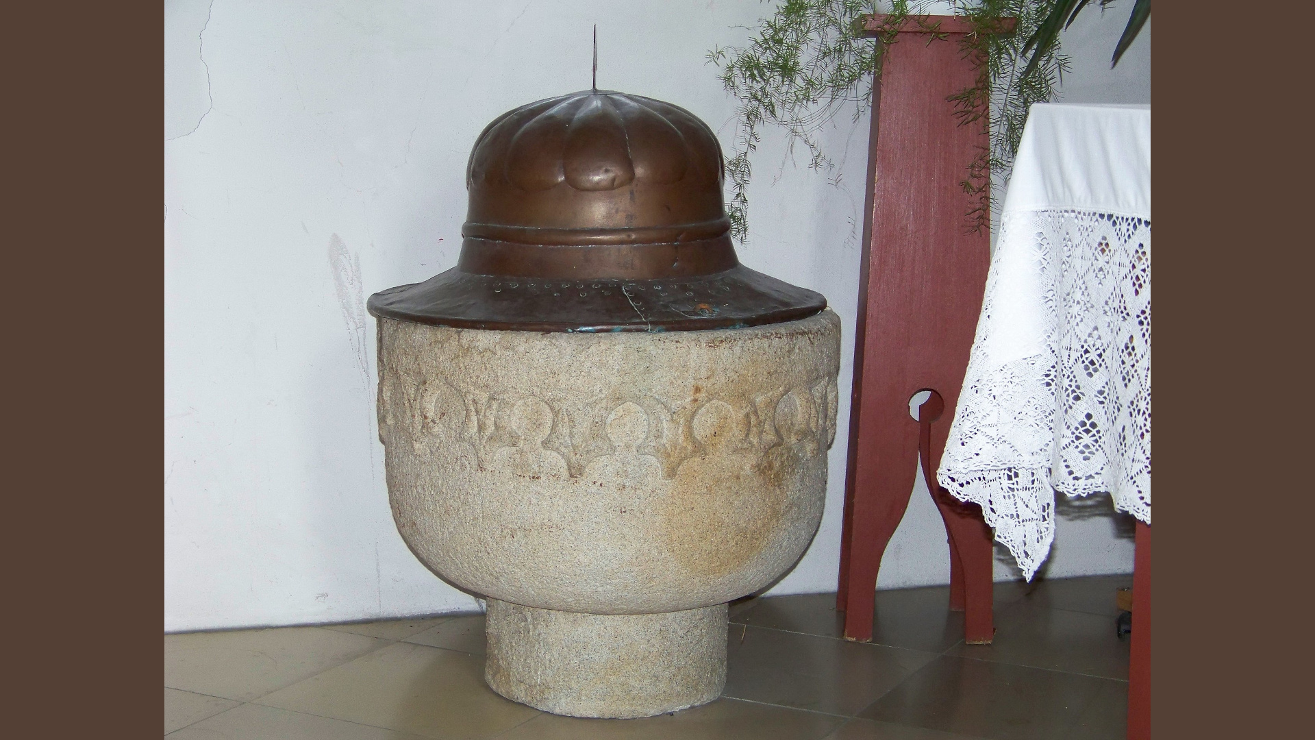 Die Bekrönung einer barocken Prozessionsstange mit der Heiligen Familie, Gottvater und dem Heiligen Geist hat ihren Platz neben dem Eingang zur Turmkapelle gefunden. Der frühere Hochaltar, der auf das Jahr 1870 datiert ist, fand nach der Restaurierung der Kirche seinen alten und neuen Platz in der Seitenkapelle, die ehemals Chorraum der Kirche war. Dieser dient der Gemeinde nun als Werktagskirche und als Taufkapelle. Hier steht seit Neubau und Renovierung auch der Taufstein. Es handelt sich dabei um das älteste Inventarstück. Der Taufstein stammt aus dem 14. Jahrhundert. Das runde Becken wird von einem gotischen Maßwerkfries umzogen. Die noch erhaltenen Teile der alten Kirche stehen unter Denkmalschutz. Um die Kirche herum liegt der Pfarrfriedhof. Auf diesem steht die Kriegergedächtniskapelle, die im letzten Viertel des 19. Jahrhunderts errichtet wurde. Auch diese steht unter Denkmalschutz.