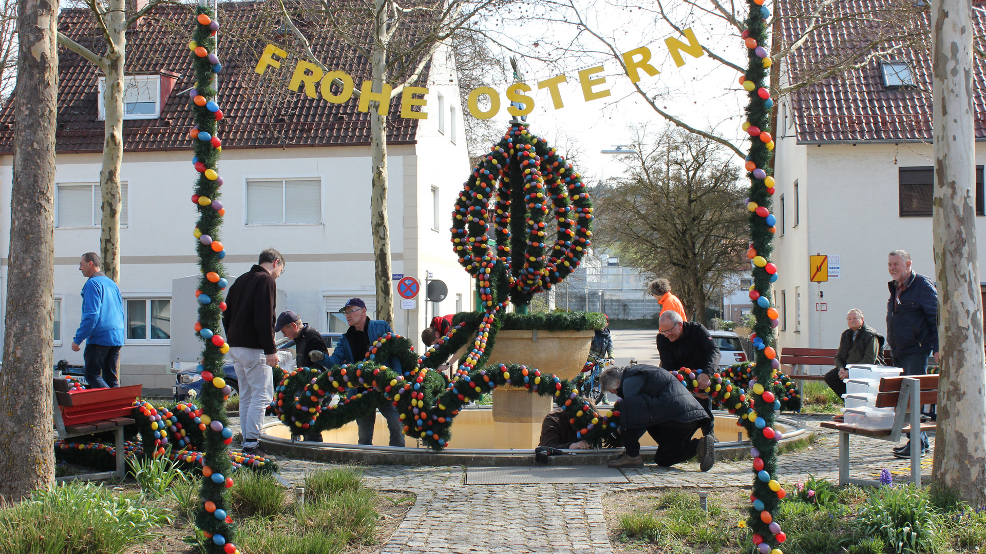 Gemeinsames Schmücken des Osterbrunnens