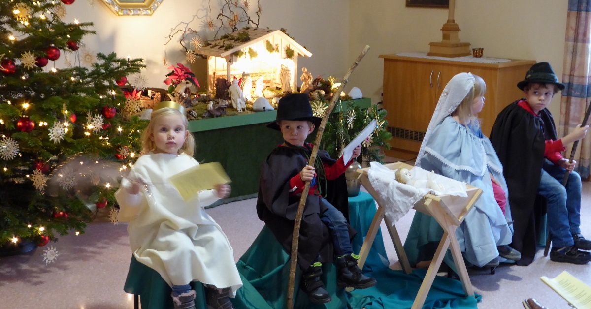 Das Besondere sei, dass, wenn jemand die Krippe besucht, ein kleiner geistlicher Vorgang passiert: „Zettel mit Sternen stehen bereit, die Besucher werden eingeladen, Namen von Menschen oder ihre Anliegen, die sie auf dem Herzen haben, aufzuschreiben und diese dem Christkind zur Krippe zu bringen.“ Die Wirkung auf Kinder sei besonders: „Die Kinder staunen, weil sie die Gesichter der Krippenfiguren sehr nahe sehen. Man kann sie anfassen, über die Figuren streichen, aber auch die Landschaft in sich aufnehmen. Die detailgetreue Ausgestaltung regt Kinder zum Staunen und Zeigen an: Da sehen sie einen Lurch auf einem Stein, Wasser plätschert den Bach hinunter, Schafe und ein Kamel kommen ... Diese Dinge beeindrucken Kinder und sie haben viel Freude daran.“ Weiter sagte die Schönstattschwester, dass Kinder bei der Krippenandacht, bei der gesungen und gebetet wird, mitspielen dürfen. „Sie dürfen sich verkleiden: als Maria und Josef, als Hirten, als Könige. Sie ziehen mit ein in die Kirche, machen die Bewegungen zu Liedern und Texten mit. Die Kinder sind so direkt miteinbezogen.“ Am vergangenen Samstag hat eine Krippenandacht unter Beteiligung von Kindern auch in Nittenau im Bistum Regensburg stattgefunden.