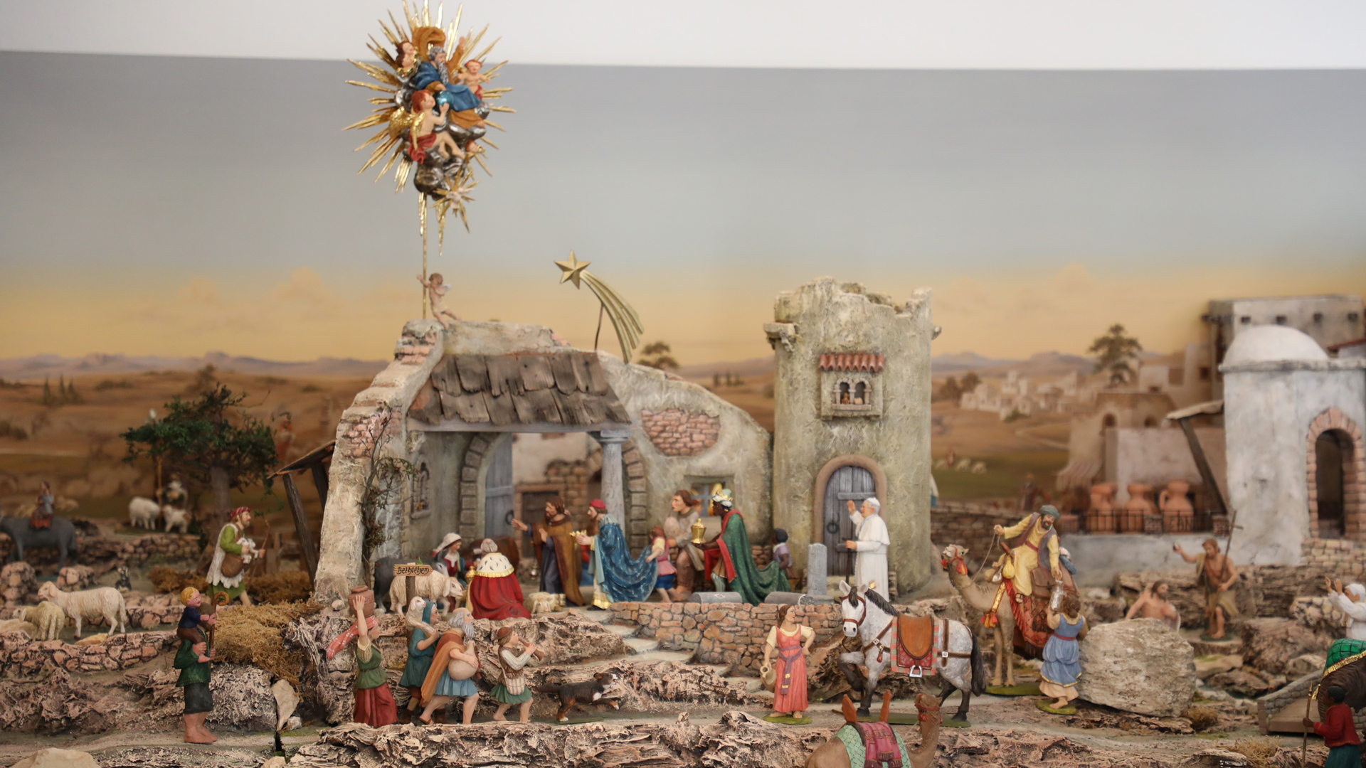 Die Exponate verteilen sich auf zahlreiche, bis zur Decke reichende Regale, Schränke oder stehen in Glasvitrinen. Hier sieht man nicht nur die klassische Holzkrippe, wie man sie oft unter dem eigenen Weihnachtsbaum stehen hat: Einige Krippen sind daumengroß. Krippen in Flaschen, wie man es von „Buddelschiffen“ kennt, Krippen in einer echten Kokosnuss, einem Stein und zahlreiche andere Arrangements. Im Refektorium des Bischofs findet man seine persönliche Krippe. Die orientalische Krippe hatte er sich zu seiner Bischofsweihe gewünscht, so Bischof Rudolf. Sie erstreckt sich mit einer Fülle an feingearbeiteten detailreichen Figuren über einen mehrere Meter langen Tisch.