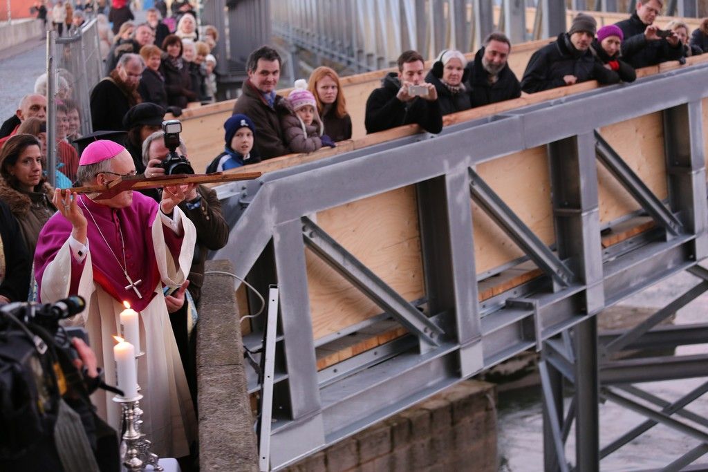Bischof Dr. Rudolf Voderholzer, Bischof von Lefka Evmenios und Regionalbischof Dr. Hans-Martin Weiss werden der Vesper, die musikalisch von einem Männerchor der Regensburger Domspatzen und dem Byzantinischen Kantorenchor München gestaltet wird, vorstehen. Nach der Vesper begibt sich eine feierliche Prozession mit allen Gläubigen zur Steinernen Brücke. Dort wird gegen 16.00 Uhr nach orthodoxer Tradition mit Hymnen, Psalmen und Lesungen das Wasser gesegnet. Schließlich wird ein Kreuz in den Fluss geworfen. In Griechenland ist es Brauch, dass dieses Kreuz von Gläubigen, die ins Wasser springen, aus dem Wasser geholt und wieder zum Bischof zurückgebracht wird. In Regensburg wird hier die Kreiswasserwacht gebeten werden, Schwimmer zu stellen, die das Kreuz zurückholen. Es werden zudem Grußworte von Bischof Dr. Rudolf Voderholzer, Regionalbischof Dr. Hans-Martin Weiss sowie von Oberbürgermeister Joachim Wolbergs gesprochen. Auch der Regierungspräsident der Oberpfalz, Herr Axel Bartelt, wird an der Donausegnung teilnehmen.