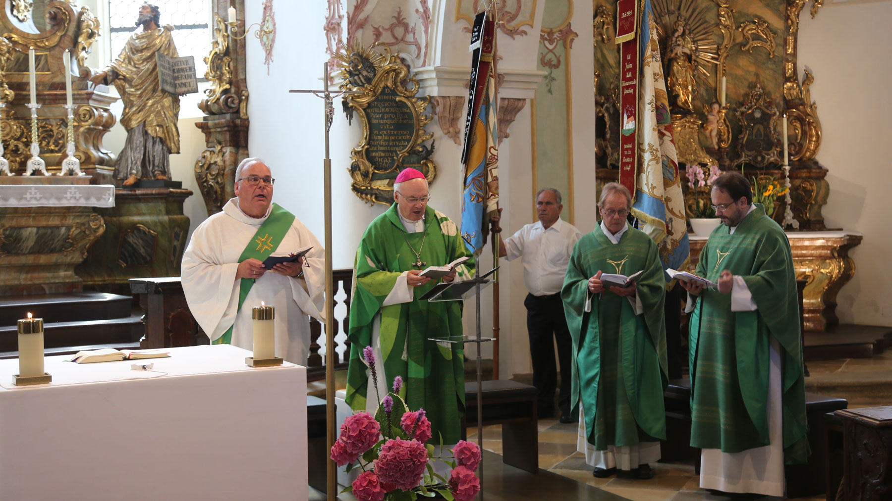 Die Messe in der ältesten Pfarrkirche in Regensburg bildete den Auftakt für die diesjährige Landesversammlung. Am Altar standen mit ihm Domvikar Msgr. Harald Scharf (Diözesanmännerseelsorger), Pfarrer Jürgen Josef Eckl (Landespräses der KMG) und Diakon Walter Bachhuber (Leiter der Fachstelle Männerseelsorge im Bistum Regensburg).