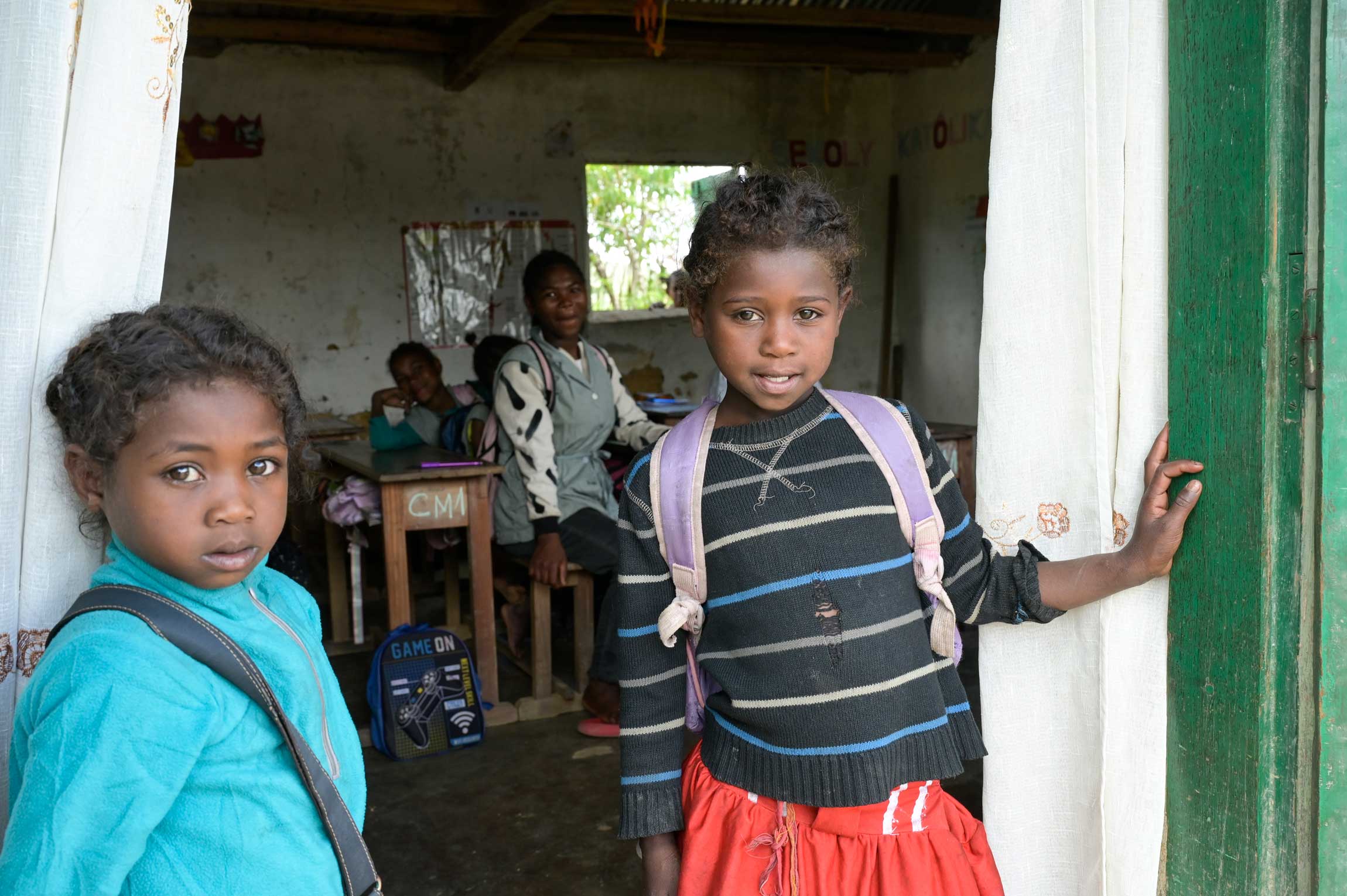 Normalerweise kümmert sie sich täglich um das kleine Reisfeld der Familie, das 13 Kilometer entfernt in einem Flusstal liegt. Heute hat eine der älteren Töchter den Gang übernommen. Ihr Mann ist noch unterwegs, heute ist Markt. Sechs Kinder hat die Familie. Nicht jedes von ihnen konnte zur Schule gehen, weil es vor wenigen Jahren in Ambodiriana noch keine gab. Jetzt aber haben die beiden kleinsten Mädchen Santatra und Shania die Chance – und Madame Rananairana ist dankbar dafür: „Diese Schule ist ein guter Ort“, sagt sie und ist froh, dass die beiden bis zum Nachmittag gut betreut sind und etwas lernen. Dabei soll es auch bleiben. Bezahlt wird bestimmt. So bald wie eben möglich. Santatra und Shania dürfen also weiterlernen. Sie besitzen und tragen keine Schuhe. Aber Schultaschen. Das ist erst der Anfang.