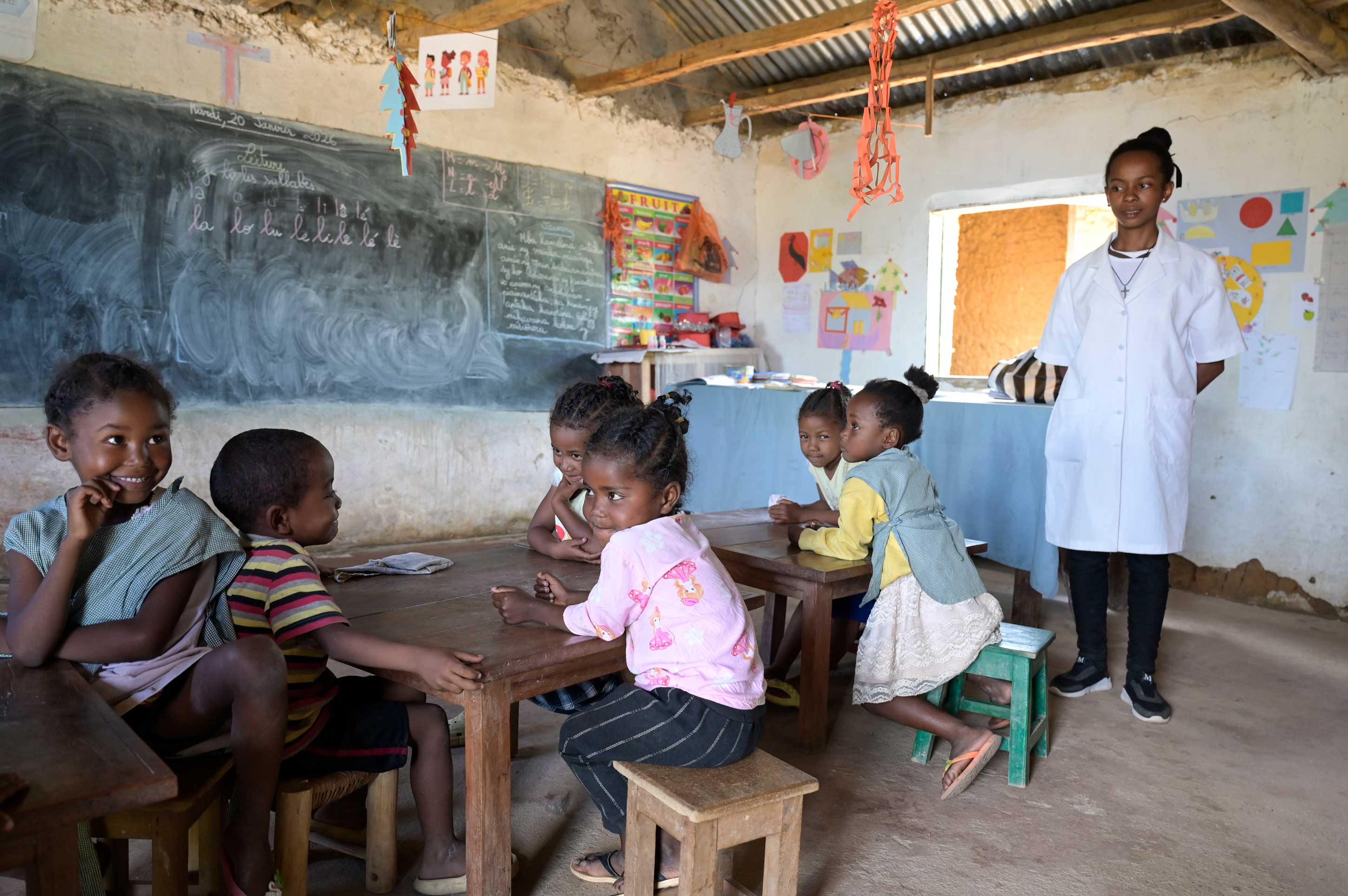 Zudem leben bis zu 80 Prozent der Bevölkerung unterhalb der Armutsgrenze. Gleichzeitig zählt die Geburtenrate mit im Durchschnitt bis zu vier Kindern pro Frau zu den höchsten weltweit. Wo es immer nur darum geht, wieviel Reis am Abend im Topf ist, müssen viele Kinder früh zum Einkommen der Familie beitragen. Wo die meisten Familien umgerechnet mit einem oder maximal zwei Dollar am Tag auskommen müssen, bleibt kaum Geld für Bücher oder eine Schuluniform – und wenig Sinn für Kinder, die etwas lernen wollen. Nur etwa die Hälfte aller Grundschüler in Madagaskar schließt die Grundschule überhaupt ab. Ein Umstand, der das Bildungsministerium des Landes offenbar nicht sonderlich interessiert. Noch weniger, seit das im vergangenen Herbst an die Macht geputschte Militärregime die Regierung gänzlich abberufen hat.