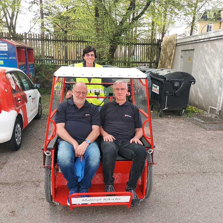 Die Sonne scheint, es wird warm – der Sommer fängt langsam an. Ab aufs Fahrrad in die Stadt, an den See oder in den Wald! Auch die Malteser holen ihre Rikscha aus dem Keller. Eine Rikscha ist ein Fahrrad mit einer kleinen Sitzbank vorne dran. Seit drei Jahren bringen sie damit Menschen, die wegen Krankheit oder Alter alleine keine Ausflüge mehr machen können, nach draußen.