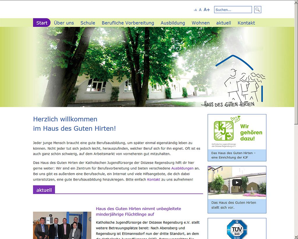 Ein Mix aus Moderne und historischem Flair – so präsentiert sich das Haus des Guten Hirten der Katholischen Jugendfürsorge der Diözese Regensburg mit seiner neuen Website. Unter <link http: www.hdgh.de _blank external-link-new-window>www.hdgh.de stellt sich das Zentrum für Berufsvorbereitung und berufliche Ausbildung mit den Teilbereichen Internat, Sonderberufsschule und verschiedenen Berufsfeldern vor. Interessierte Besucher der Seite können dank der einfachen Navigation schnell und verständlich alle gewünschten Informationen abrufen.