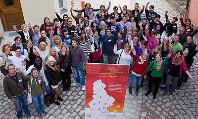 Mit pfiffigen Spielen zu Themen wie Zusammenarbeit, Teamfähigkeit, Einfühlungsvermögen und Durchhaltevermögen konnten Ralf und Jana Glück von der Firma Glücksart bei den Azubis punkten. Aufgelockert wurden diese Einheiten immer wieder durch Lieder und Tänze. Die jüngsten Teilnehmer sind gerade 17 Jahre alt, während die älteste Auszubildende letztes Jahr ihren fünfzigsten Geburtstag feierte. Die Schar der Caritas-Azubis ist bunt: Schülerinnen und Schüler unterschiedlichster Herkunft und Alter kamen in den Räumen der Zentrale des Diözesan-Caritasverbandes zusammen, um sich gegenseitig kennenzulernen. In lockerer Atmosphäre erlebten die künftigen Altenpfleger, wie sie mithilfe der Musik ältere Menschen zur Bewegung animieren können. „Regelmäßige Bewegung ist für alte Menschen extrem wichtig. Musik schafft Gemeinschaft und ist in der Pflege sehr gut umzusetzen“, sagte Anita Kerscher, Fachreferentin für Ambulante Pflege bei der Caritas Regensburg. Die Wirkkraft von Musik und Tanz im gesamten Pflegeprozess sei von einer nicht zu unterschätzenden Bedeutung. Das weiß auch eine Pflegeschülerin: „Meinem Opa hat die Musik im Pflegeheim sehr geholfen. Er ist dadurch viel fröhlicher geworden. Diese Erfahrung und die Ansätze, die ich heute gelernt habe, kann ich im Beruf gut umsetzen.“ Für die 20-Jährige ist es auch schon bald so weit. Sie befindet sich im dritten und letzten Ausbildungsjahr und möchte später in einem der rund 50 Caritas-Alten- und Pflegeheime oder 60 ambulanten Pflegedienste der Caritas arbeiten. Und die Chancen, übernommen zu werden, sind gut: Die Caritas sucht in Oberpfalz und Niederbayern für ihre Pflegeeinrichtungen gut ausgebildeten Pflegefachkräfte. Derzeit lernen rund 130 Auszubildende den Beruf des staatlich geprüften Altenpflegers bei der Caritas.