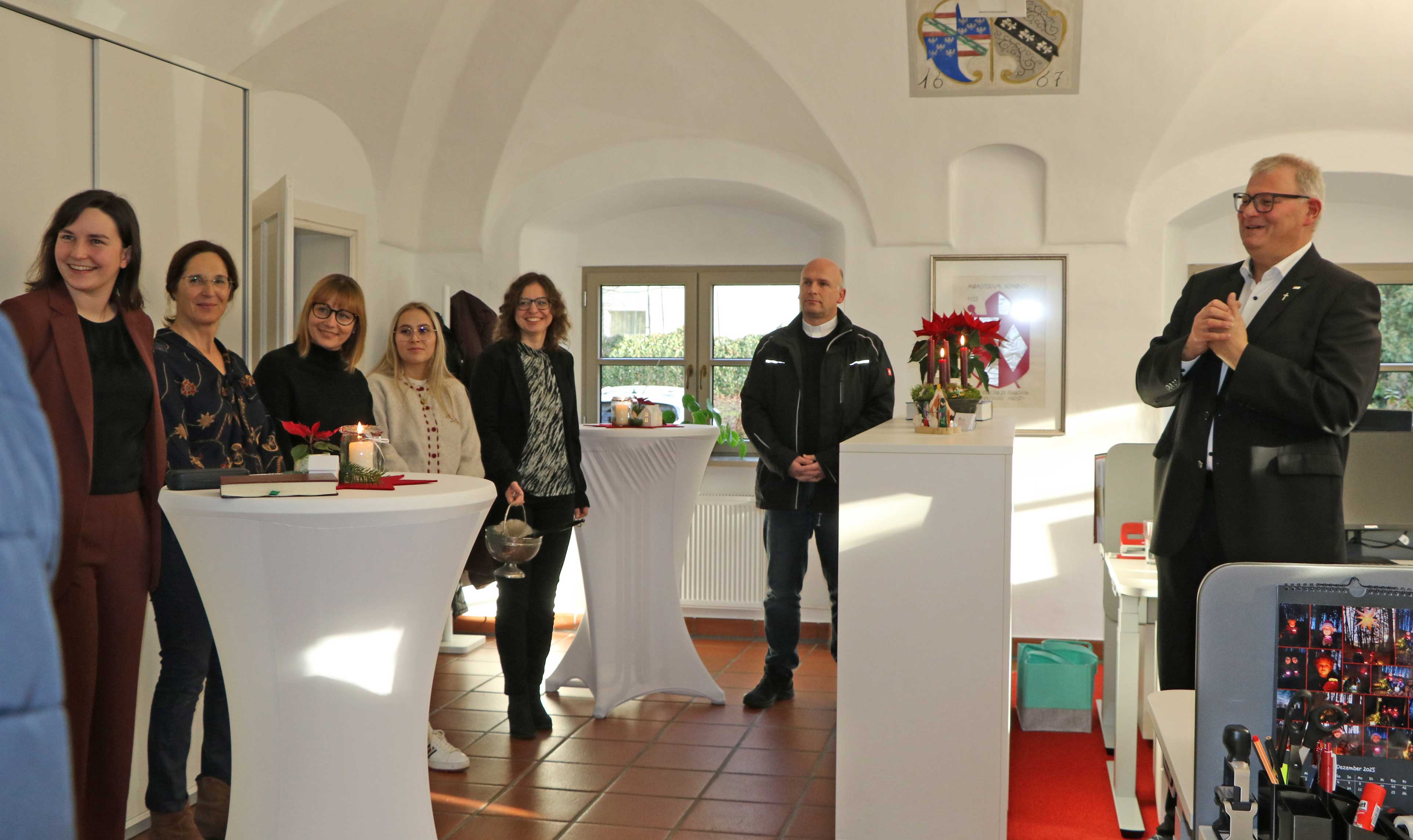 In seiner Begrüßungsansprache unterstrich Domkapitular Johann Ammer, Abteilungsleiter der Pfarreienunterstützung, die ausgezeichneten Voraussetzungen des neuen Standortes in Elsendorf. Besonders betonte er, dass die Entscheidung für diesen Standort nicht zufällig sei: „Auf der Suche im Süden habe ich in Elsendorf sofort gemerkt, ‚das passt‘“, so Ammer. Er bedankte sich herzlich bei Pfarrer Pater Paul sowie der Kirchenverwaltung für die schnelle und erfolgreiche Einigung und hob hervor, dass das Team nun im „schönen alten Pfarrhof“ beste Voraussetzungen vorfinde.