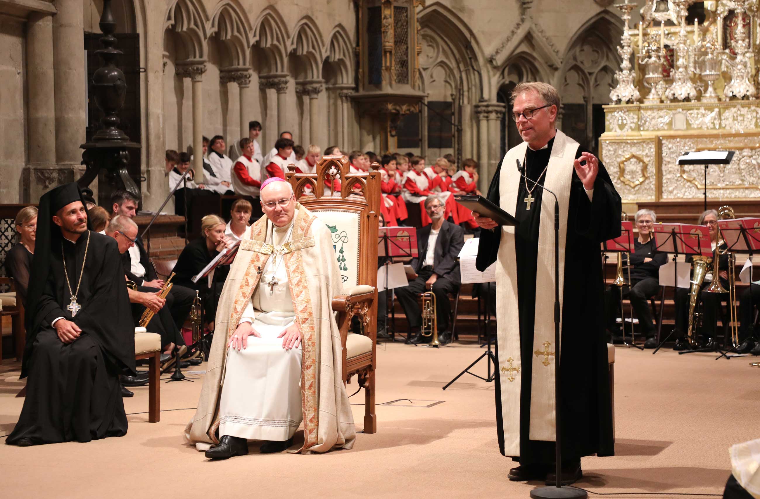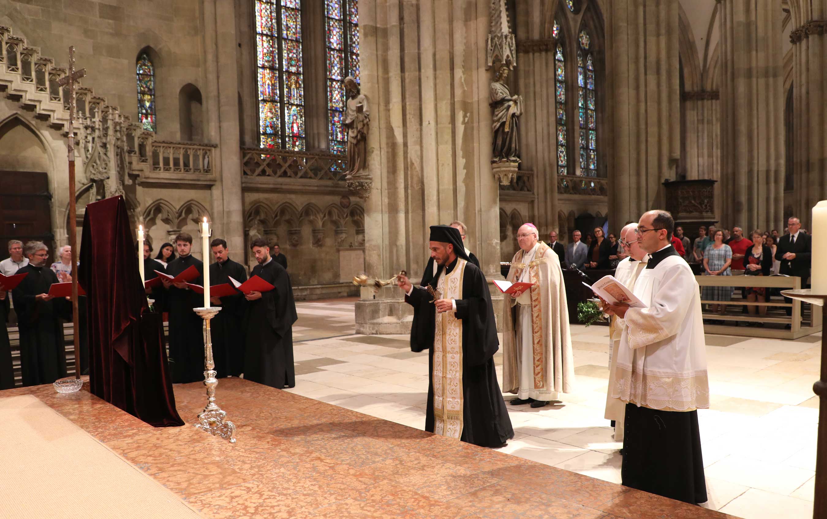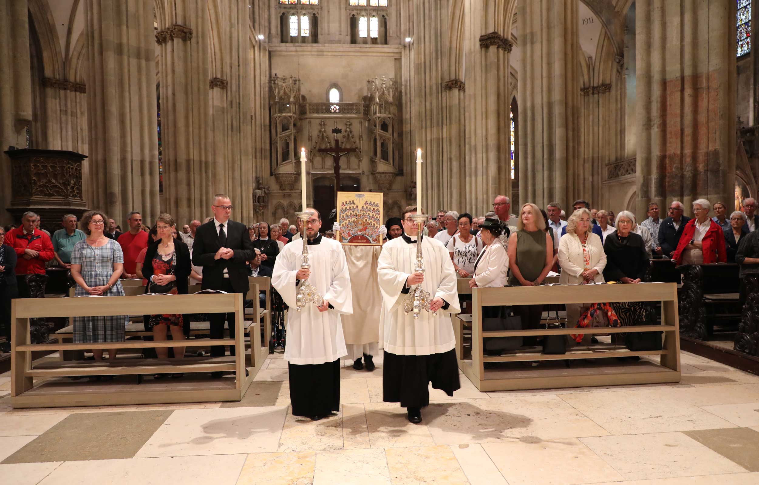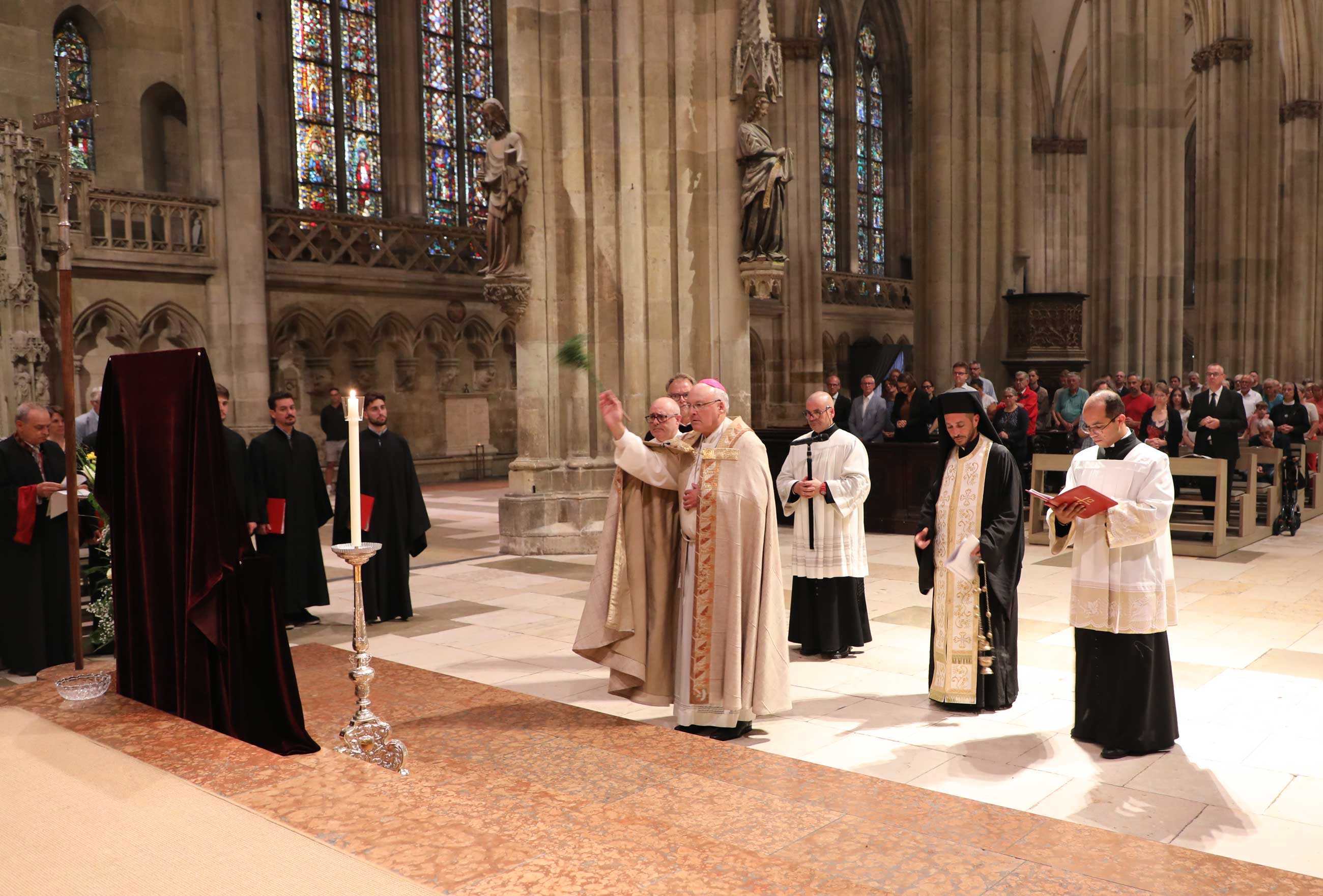 Zahlreiche Gläubige waren der Einladung gefolgt, um das Jubiläum dieser kirchengeschichtlich bedeutsamen Versammlung mitzubegehen. Die beeindruckende musikalische Gestaltung oblag dem Chor der Regensburger Domspatzen unter der Leitung von Domkapellmeister Christian Heiß, dem Byzantinischen Kantorenchor München unter der Leitung von Prof. Dr. Konstantin Nikolakopoulos, dem Evangelischen Altstadtposaunenchor Stadtbläser unter der Leitung von Katharina Garcia; an der Orgel spielte Domorganist Prof. Franz Josef Stoiber.