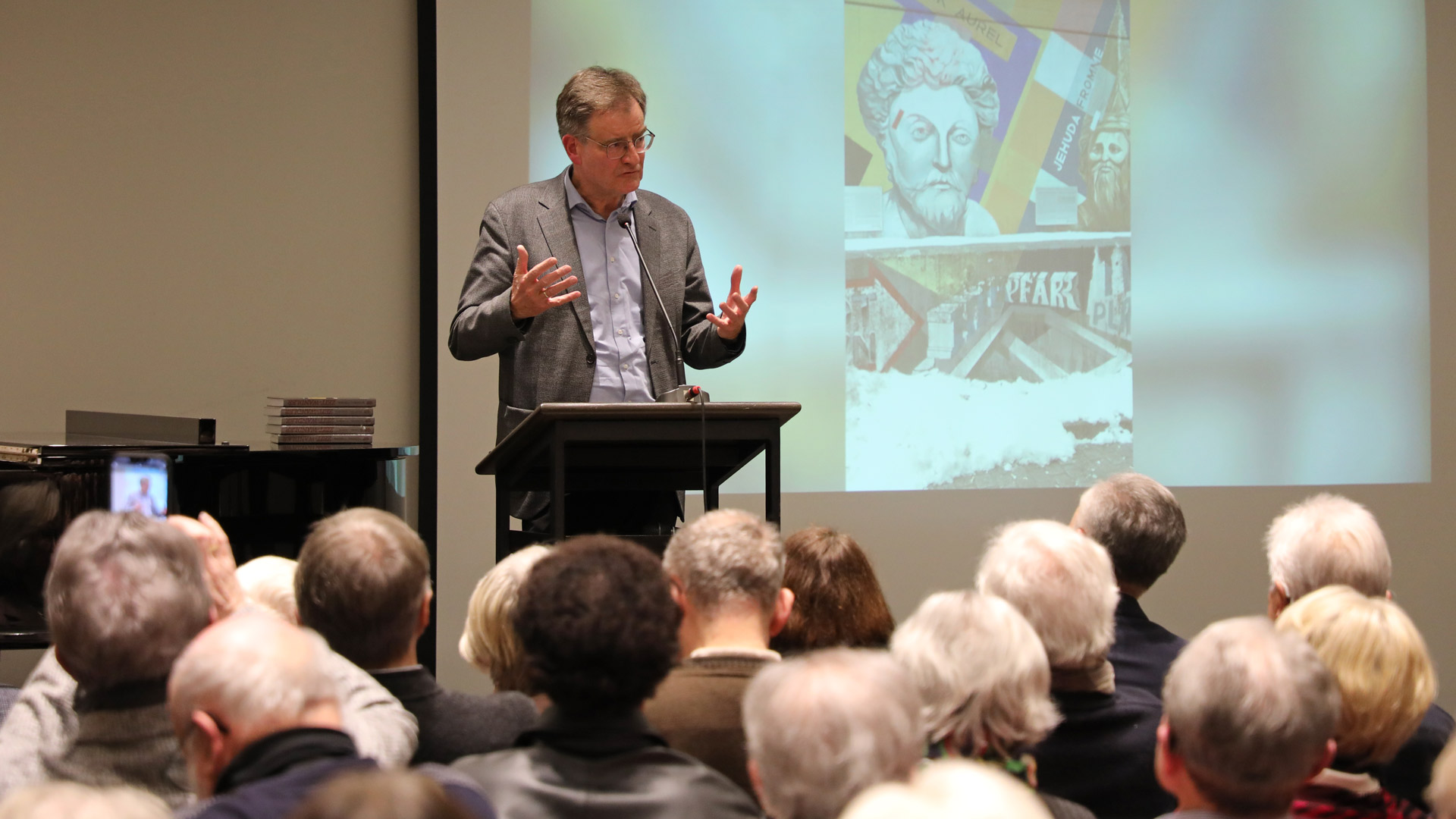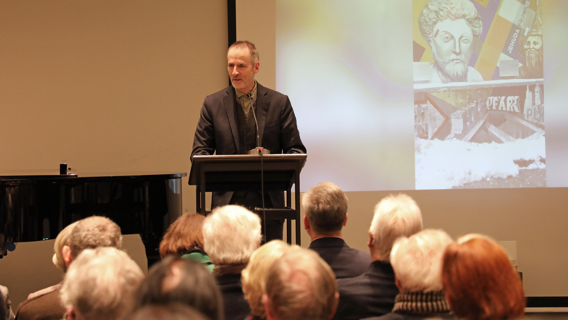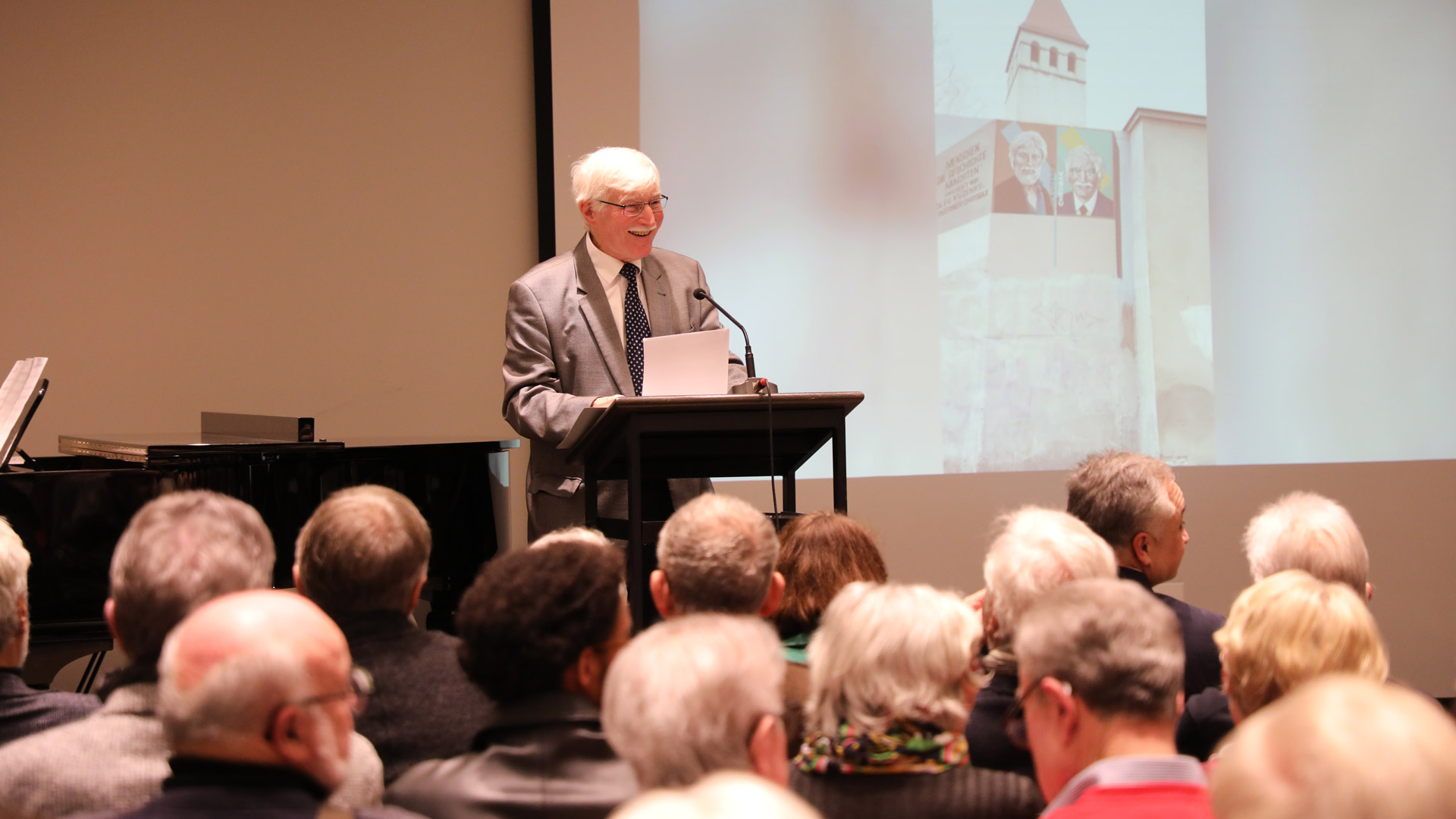 Es war ein freudiger Anlass, der vergangenen Montagabend Menschen im Saal der Jüdischen Gemeinde in Regensburg zusammenbrachte. Dr. Werner Chrobak und der Künstler Oleg Kuzenko stellten ihr Buch „Zeit-Wandler. Menschen, die Geschichte formten“ vor. Darin geht es um die in Regensburg öffentlich zugängliche Porträtgalerie des Künstlers Kuzenkos „Personen, die in die Geschichte Regensburgs eingegangen sind“. Grußworte hielten an dem Abend neben den beiden Autoren, die Oberbürgermeisterin Gertrud Maltz-Schwarzfischer, Ilse Danziger, Vorsitzende der Jüdischen Gemeinde Regensburg, Stefan Aumüller, stellevertretend für Aumüller Druck, bei denen das Buch „Zeit-Wandler“ gedruckt wurde. Das Abschlusswort hielt Verleger Fritz Pustet. Musikalisch begleitete die Pianistin Inna Schur den Abend.