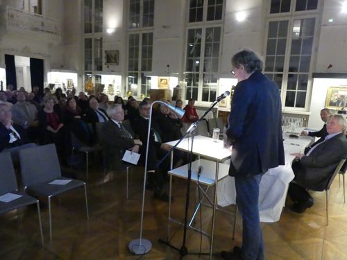 Die folgende Vortragsveranstaltung mit Podiumsdiskussion fand im ehemaligen Ballsaal am Haidplatz statt, dessen Bezug zum Reichstag eine besondere Aura verleiht. Traditionell ereignen sich hier Kunstauktionen, jetzt wurden grundlegende Aussagen von Religionen verhandelt. Wie sich die Zeiten ändern, ist nicht zuletzt an der Decke des Saales zu vermerken, der im lupenreinen Jugendstil gehalten ist. Das Thema der Kurzvorträge lautete vor allem „Das Menschenbild in den großen monotheistischen Weltreligionen“. Es musste etwas durchaus Anziehendes haben, hatten sich doch ca. 150 Altcusaner eingefunden, die den Ausführungen eines Christen, einer Jüdin sowie eines Muslims mit erheblichem Interesse folgten.