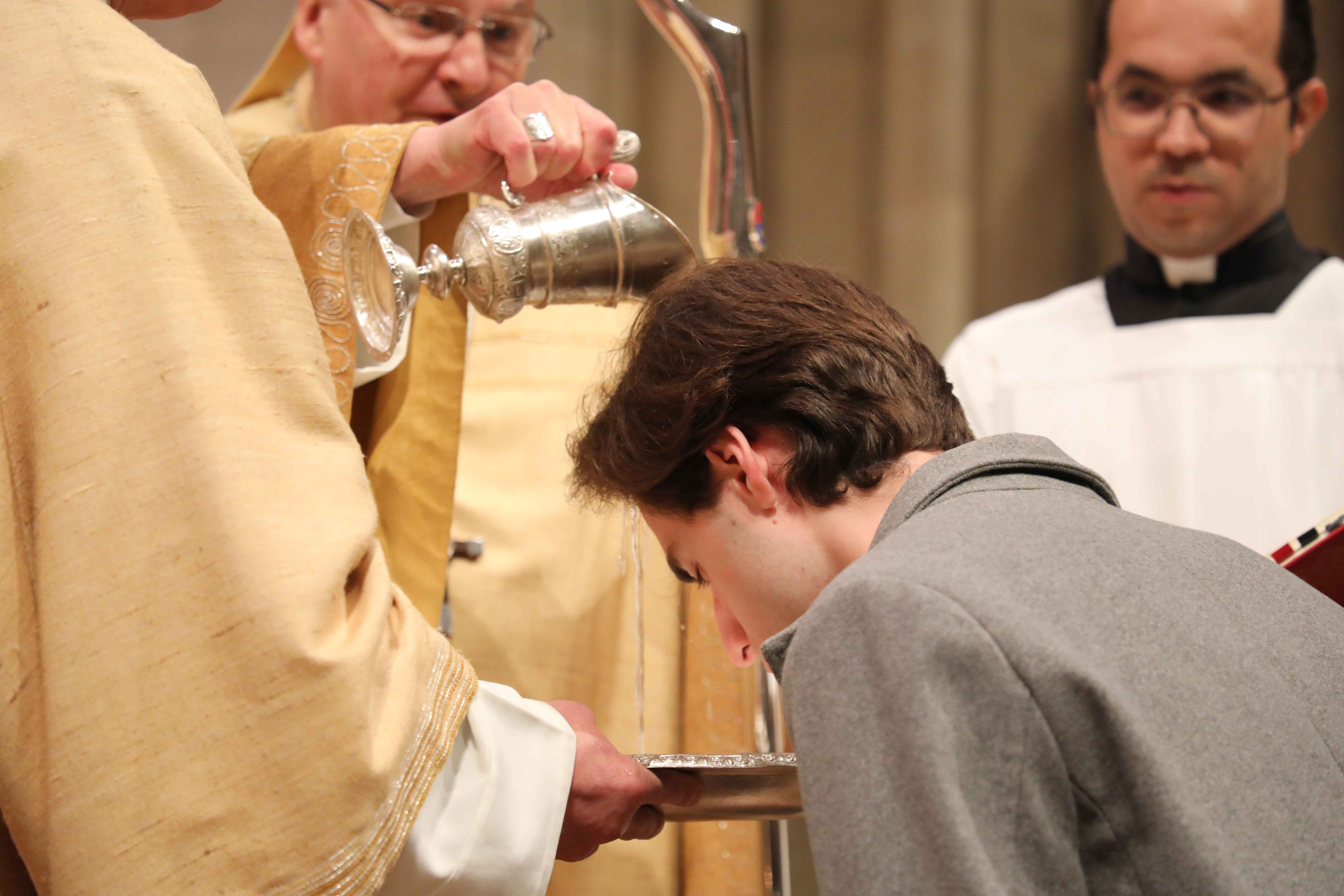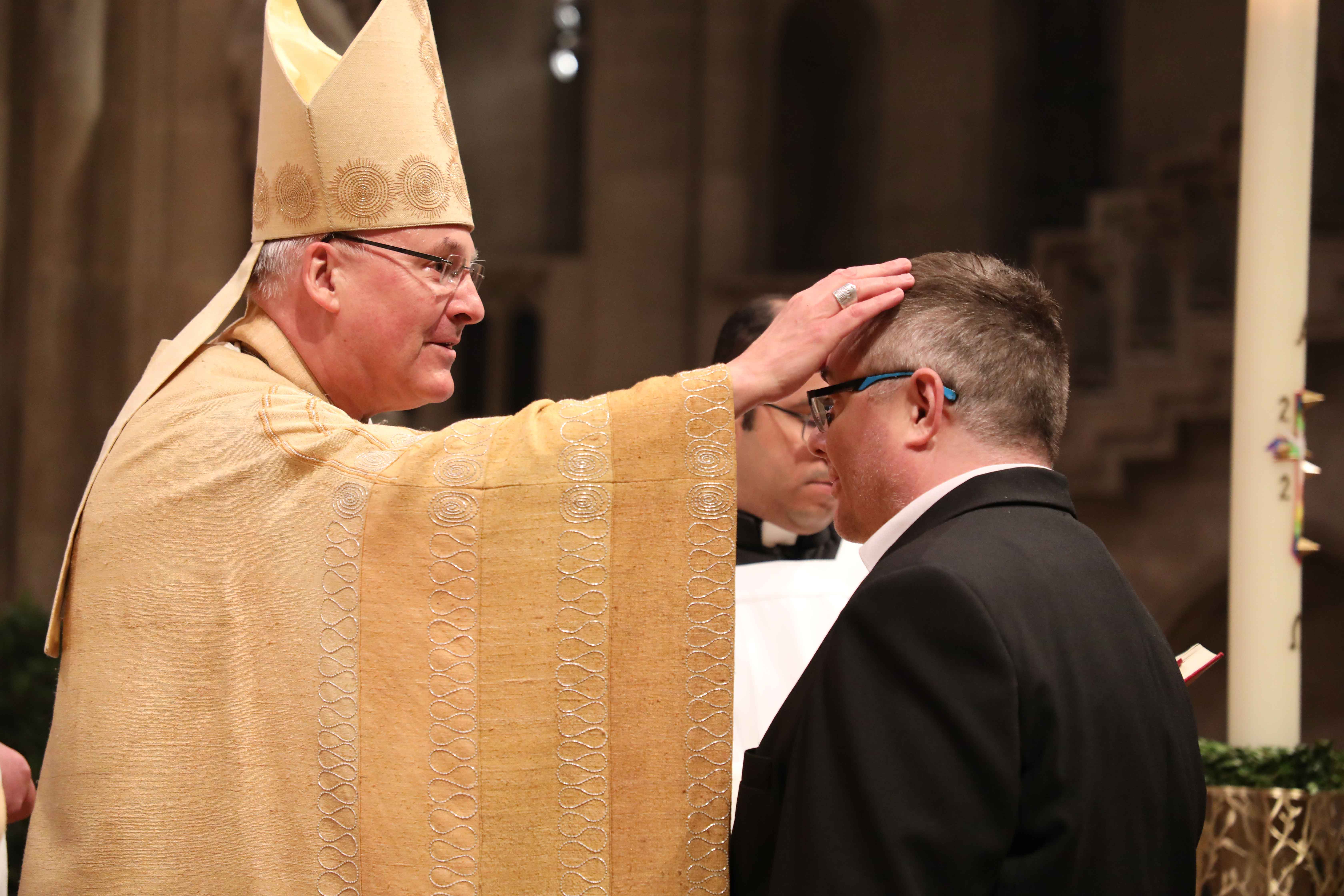 Besonders freute sich Bischof Rudolf Voderholzer über einen Täufling aus den Reihen der Regensburger Domspatzen. Dieser hatte aus freien Stücken um die Taufe gebeten. Wie alle anderen Taufbewerber wurde er intensiv auf diesen Moment vorbereit. „Vielleicht ist das heute, lieber Herr Domkapellmeister, liebe Sänger unseres Domchores, einer der Höhepunkte des Jubiläumsjahres, da Ihr ja das 1050-jährige Jubiläum Eures Bestehens feiern dürft“. Ihre Gesänge, mit denen sie erhebend die Liturgie im Dom gestalten, ihre Konzerte, mit denen sie Menschen auf der ganzen Welt Freude bereiten, aber auch die Gemeinschaft im Chor, der Schule und in der Liturgie haben offenbar die Sehnsucht wachsen lassen, ganz zu Christus zu gehören, Glied seiner Kirche zu sein und sich von ihm senden zu lassen, so Bischof Rudolf.
