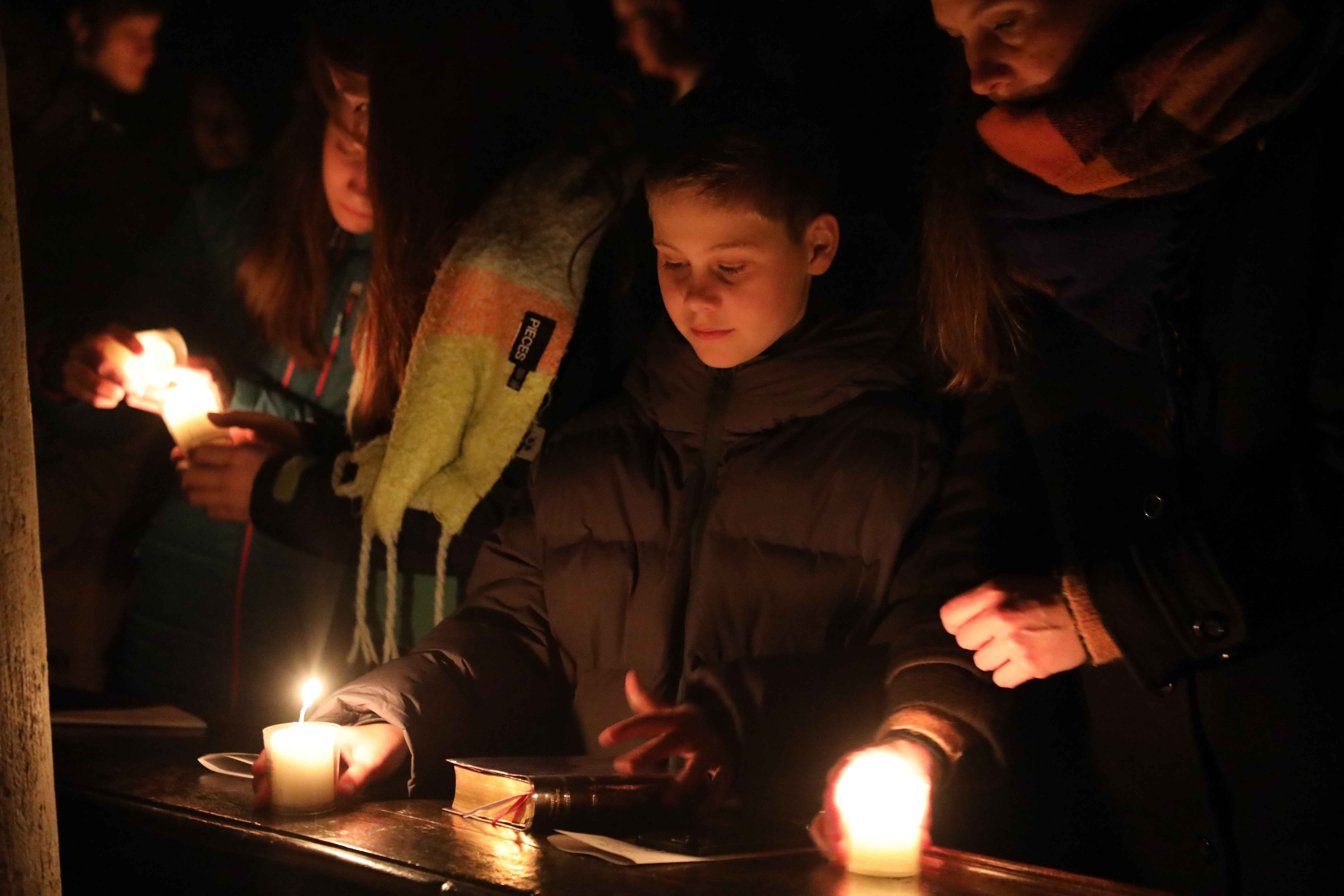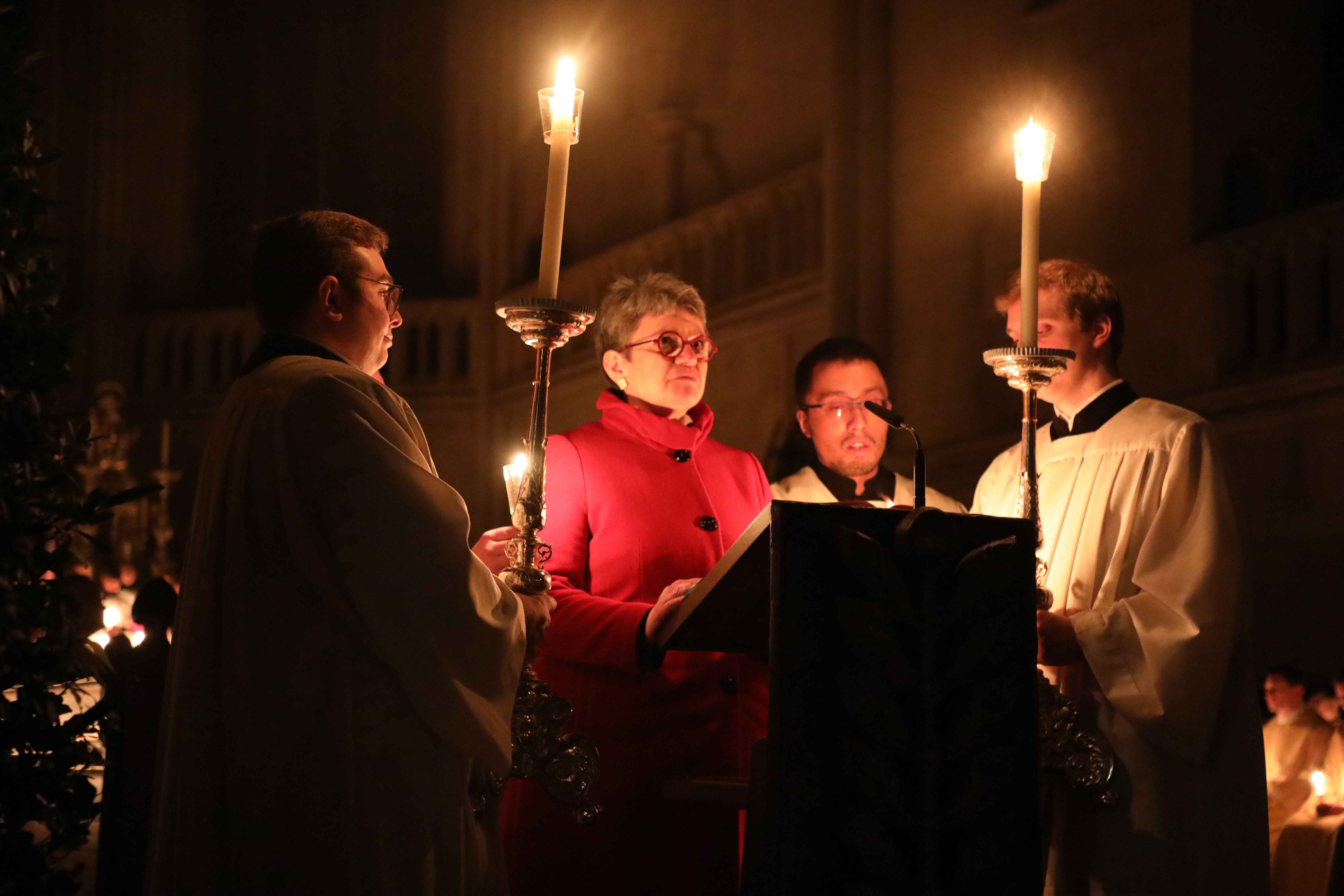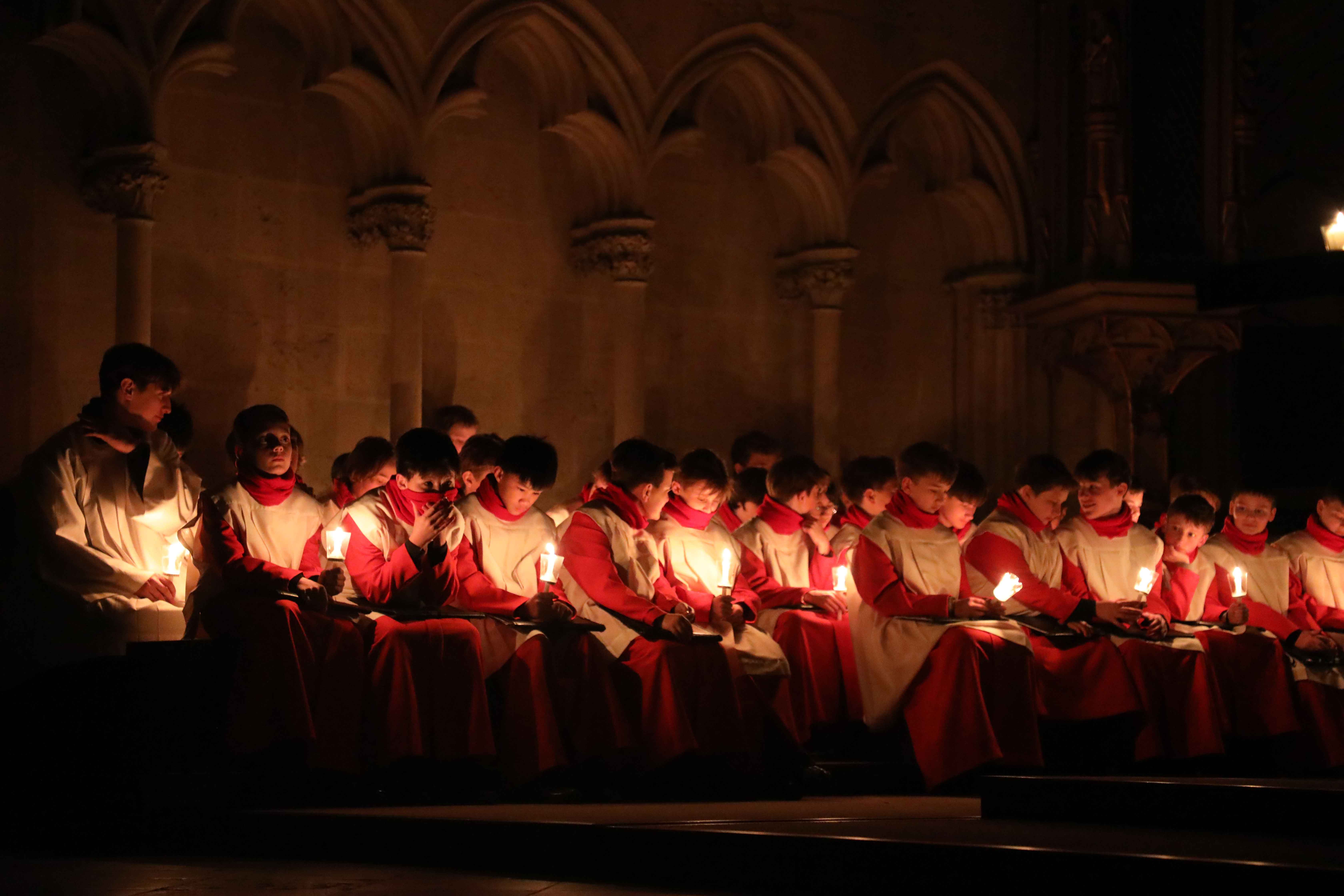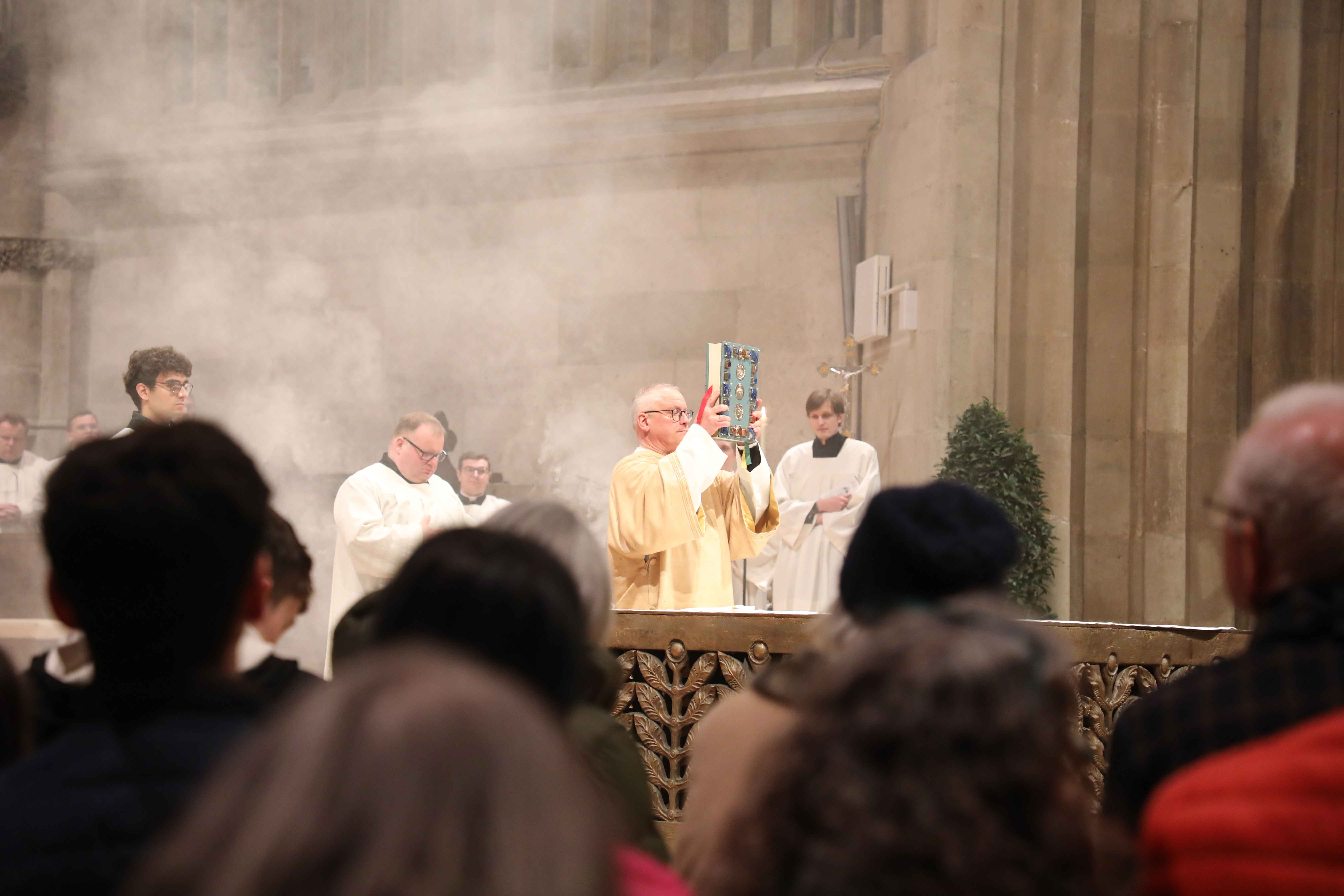 Die Osternacht begann nach Sonnenuntergang mit dem Entzünden des Osterfeuers auf der Südseite des Doms. An dessen Glut wurde die große Osterkerze entzündet und in einer stillen Prozession in den dunklen Dom getragen. Mit dem dreifachen Ruf „Lumen Christi“ verkündete der Diakon das Licht Christi, das anschließend unter den Gläubigen weitergegeben wurde – ein symbolträchtiges Ritual, das den Kirchenraum allein durch den Schein der Kerzen in warmes Licht tauchte.