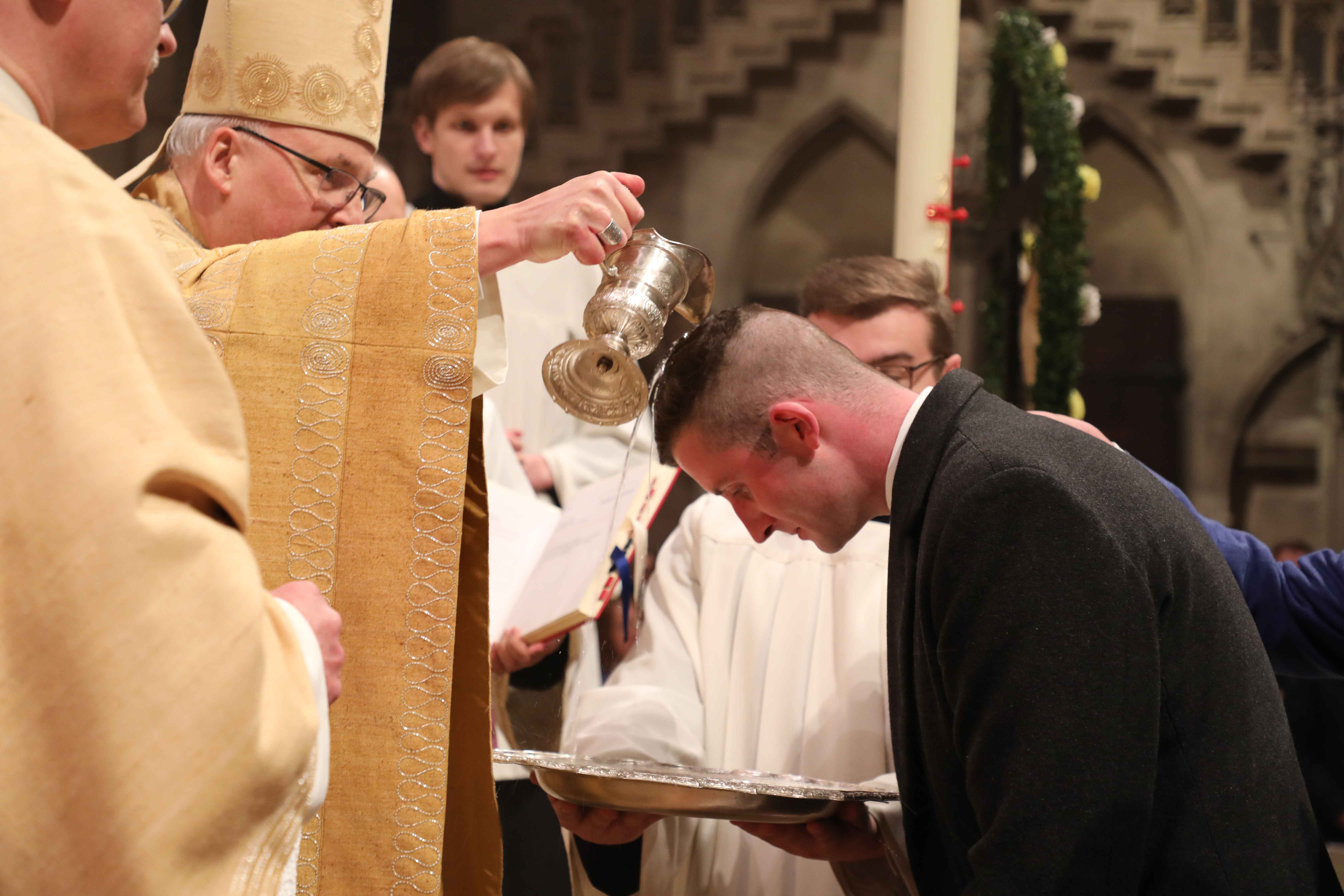 Von frühester Zeit an wurde der Tag der Osternacht als der wichtigste Tauftermin der Kirche gefeiert, da an diesem Tag durch die Sakramente der Taufe, der Firmung und der Eucharistie neue Schwester und Brüder in die Gemeinschaft der Kirche aufgenommen werden. Bischof Rudolf sprach dabei besonders die Taufbewerber an, die an diesem besonderen Tag mit ihren Familien, Patinnen und Paten an der Osternacht im Dom teilnahmen. So unterschiedlich auch die Lebensgeschichten der Taufbewerber sein mögen. In einem kommen alle überein, und zwar „in der Sehnsucht zu Christus zu gehören“, so der Bischof.