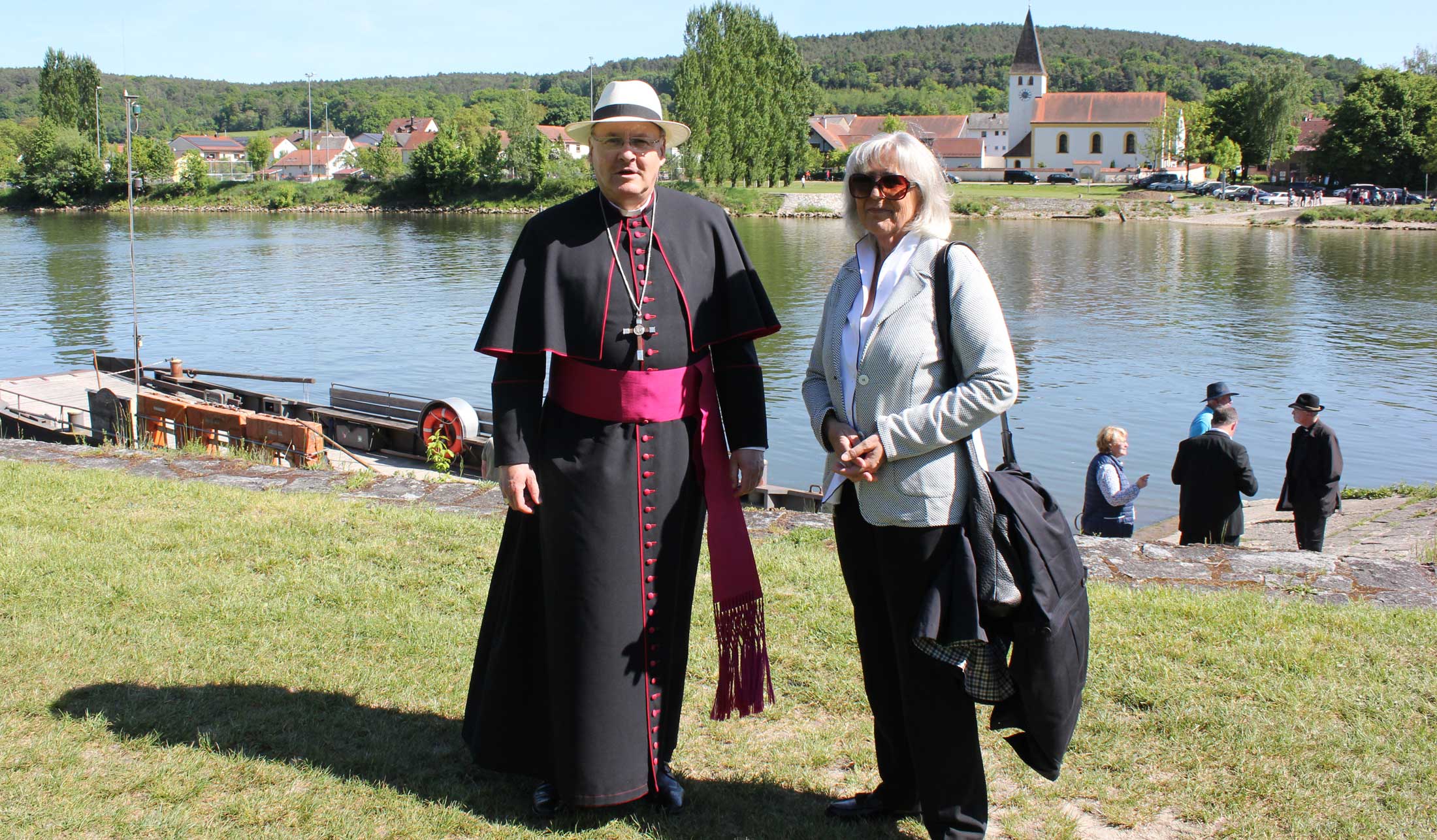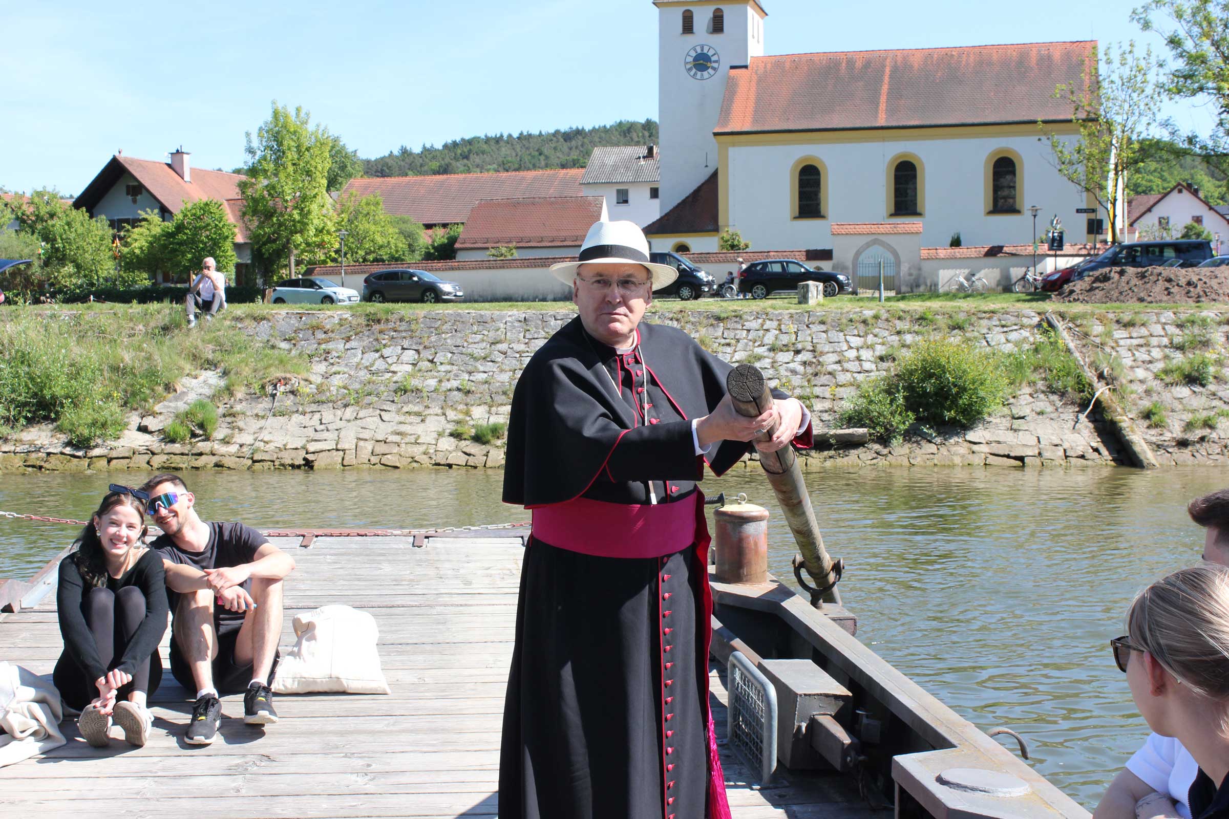 Der Besuch von Bischof Dr. Rudolf Voderholzer wurde zu einem echten Festtag für die Bewohner von Matting und Graßlfing: Zahlreiche Gemeindemitglieder hatten sich zwischen Kirche und Donaufähre in Matting versammelt, um Bischof Rudolf zu empfangen. Pfarrer Gerhard Reber und Bürgermeisterin Barbara Wilhelm begrüßten ihren Gast und alle Anwesenden sehr herzlich. Die anschließende Fahrt mit der Gierseilfähre über die Donau und zurück machte Bischof Rudolf sichtlich Spaß. Sehr zur Freude aller mitfahrenden Gäste, durfte er für eine kurze Strecke das Ruder des Fährmanns übernehmen.