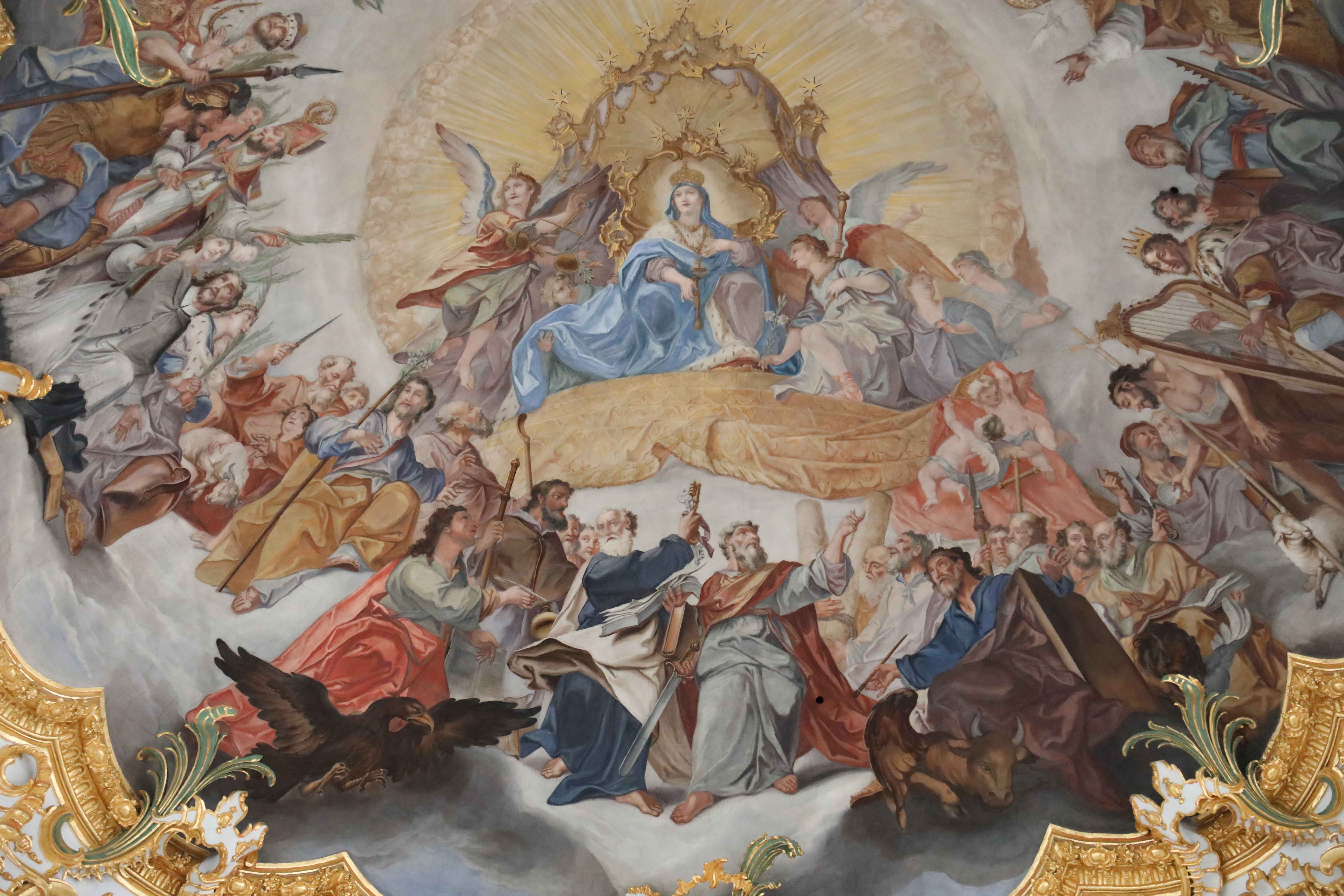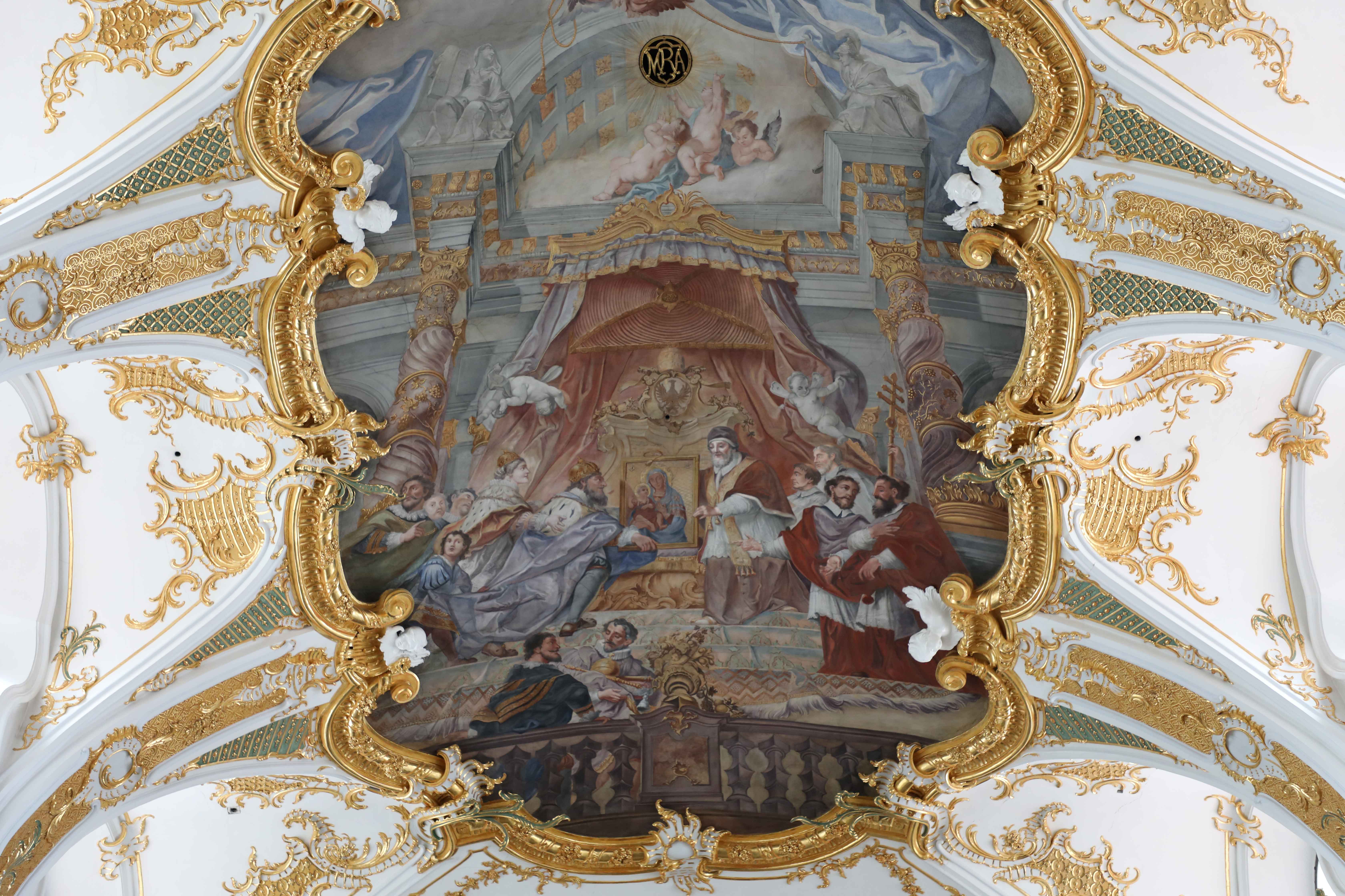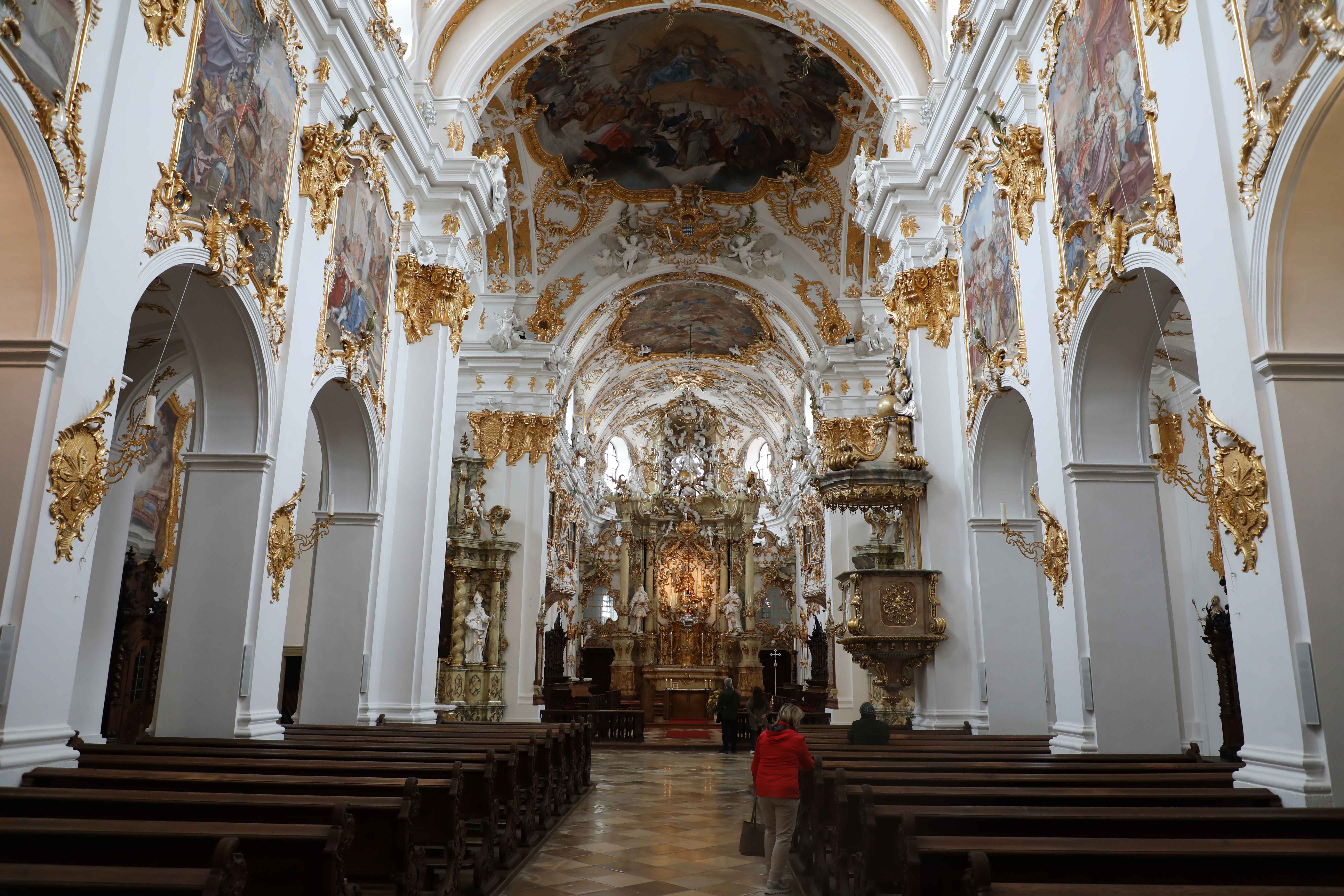 Das ganz besondere in St Kassian ist das Bildprogramm. Die Wallfahrtsfigur zur „schönen Maria“ stammt ursprünglich aus der Marienkirche beim Neupfarrplatz. In St. Kassian wurde 1747 diese Wallfahrt wiederbelebt. Dadurch kamen viele Spenden und man hat dann davon die Kirche im Rokokostil modernisiert. Sechs große Fresken zeigen sechs schöne Frauen aus dem Alten Testament als Vorausbilder auf dem Weg zur „schönen Maria“. Eine weitere Besonderheit: Wie in allen alten Kirchen in Regensburg – Niedermünster, Alte Kapelle, Ulrichskirche – geht man in St. Kassian beim Betreten nach unten, weil im Laufe der Jahrhunderte das Straßenniveau gestiegen ist.
