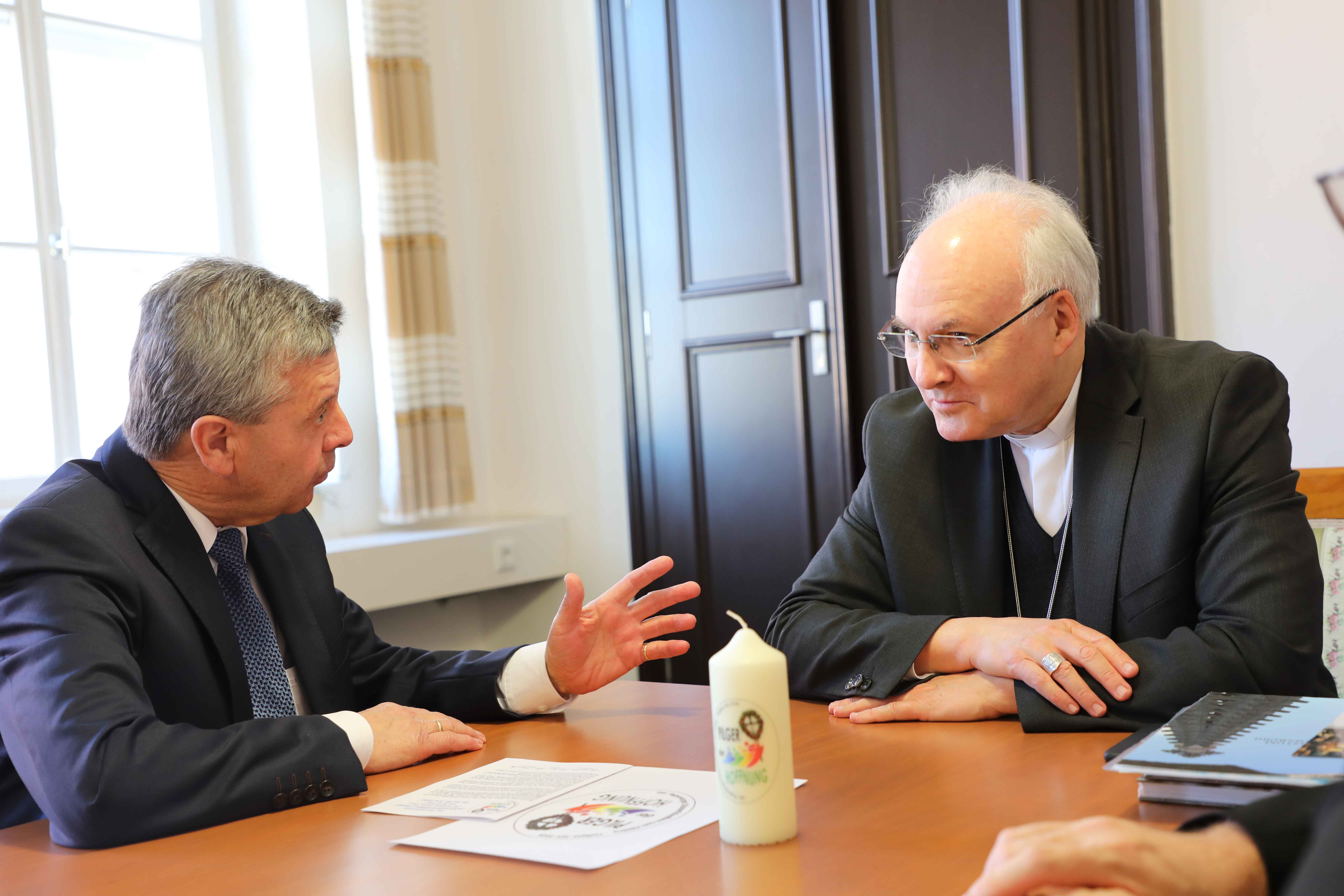 Traditionell besucht die Pilgerleitung im Vorfeld der der Regensburger Diözesanwallfahrt nach Altötting Bischof Rudolf Voderholzer, um ihn auf den neuesten Stand der Vorbereitungen zu bringen. Pilgerführer Bernhard Meiler und Pilgerpfarrer Hannes Lorenz berichteten ausführlich über aktuellen Stand der Vorbereitungen zur 196. Diözesanfußwallfahrt nach Altötting vom 05. bis 08. Juni 2025.